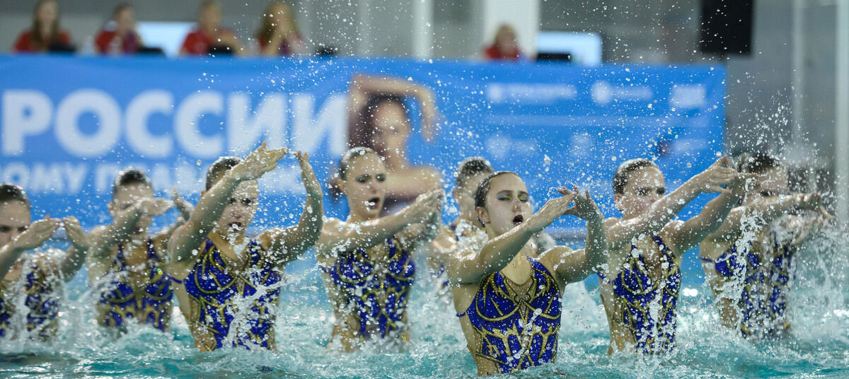 Четыре дня в бассейне «АВТОТОР-Арены» в калининградском микрорайоне имени Героя СССР Александра Космодемьянского не было классического плавания. И водного поло тоже. Все дорожки в обеих половинках разделённого искусственным бортиком олимпийского бассейна снимали ради них — синхронисток и синхронистов со всей страны.