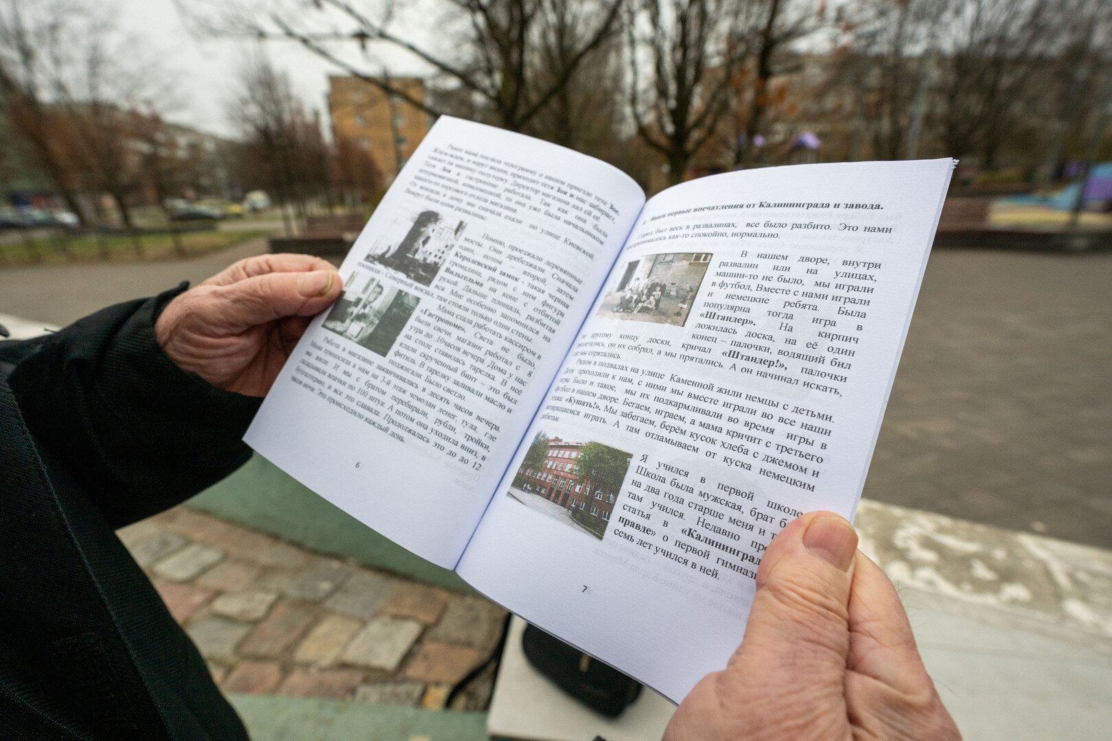 — Во дворе в детстве мы играли с немецкими детьми (бывшие жители города жили в подвалах). Помню, как в январе 1948 года их начали депортировать. По проспекту шли колоннами старики, женщины, дети с чемоданами, узлами и тележками. Многие были голодными: ко мне подошла немка и попросила хлеба. Я побежал к маме — она отрезала половину буханки, и я отнес её голодной женщине. Потом я снова увидел эту немку, уже с двумя детьми: они отблагодарили меня и подарили немецкие санки — на них я всё детство и юность катался с горки в парке Калинина, — вспоминает писатель.