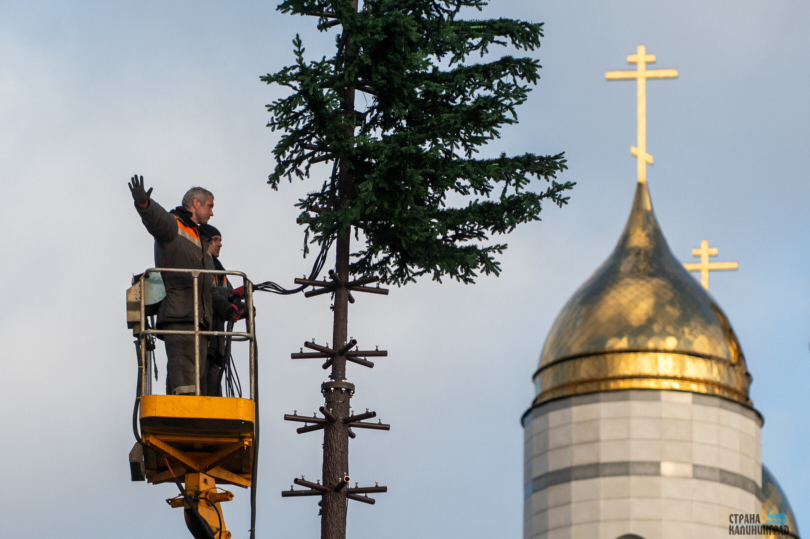 Украшать Калининград к Новому году начали еще в ноябре. А на этой неделе дошла очередь и до установки главной елки на площади Победы - ее монтаж стартовал в понедельник, 8 декабря.