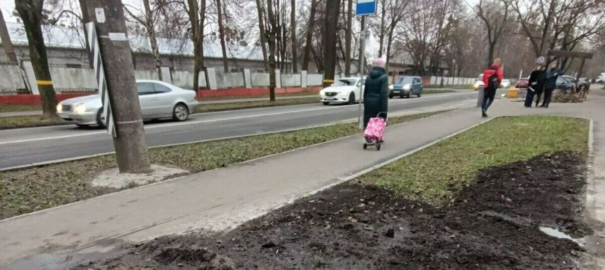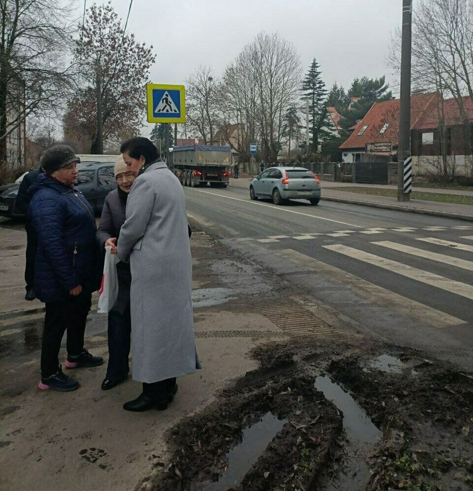 В Калининграде на улице Емельянова автомобили раскатали газоны. Жители пожаловались на это Елене Дятловой во время рабочего выезда сити-менеджера.