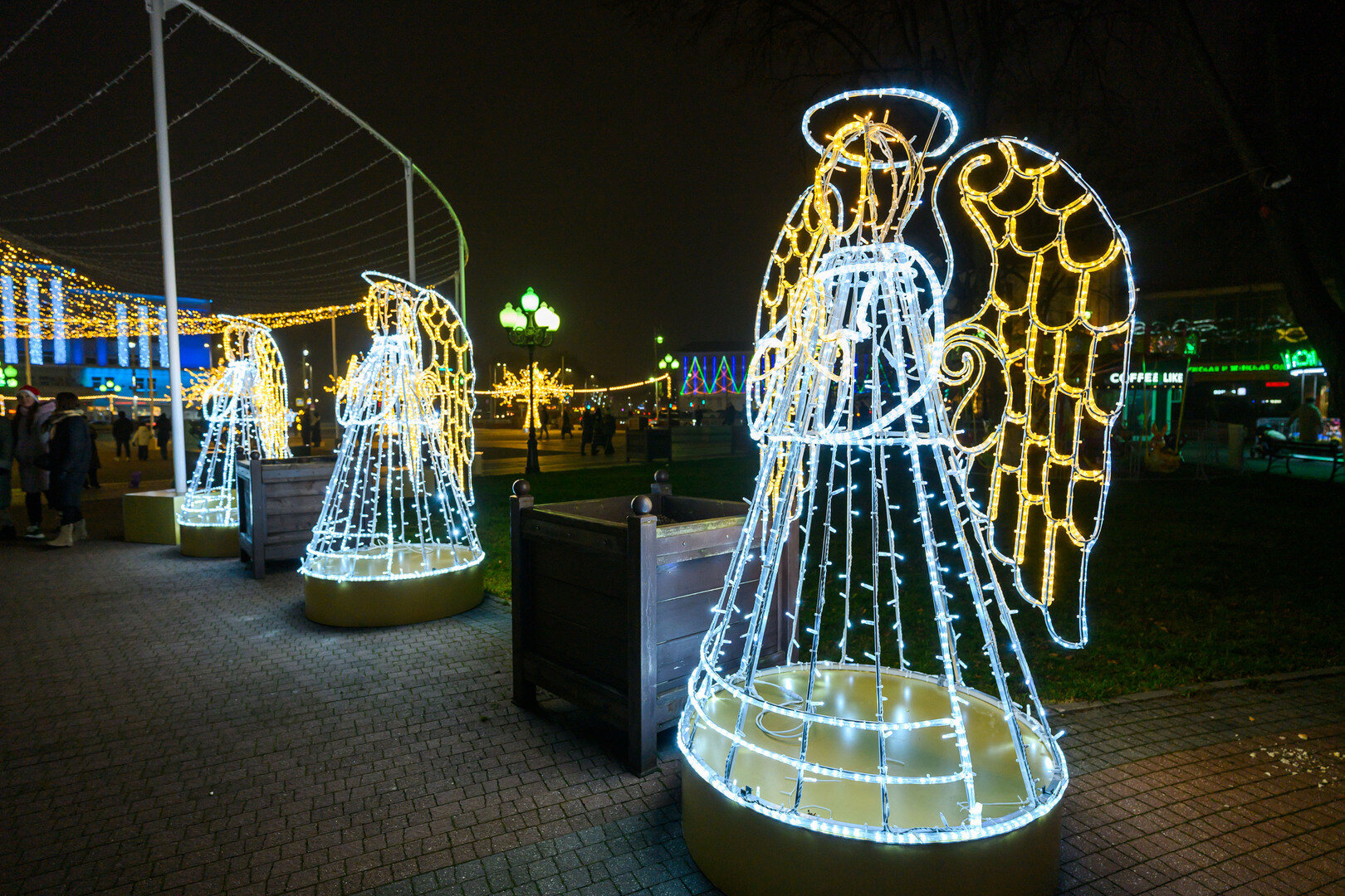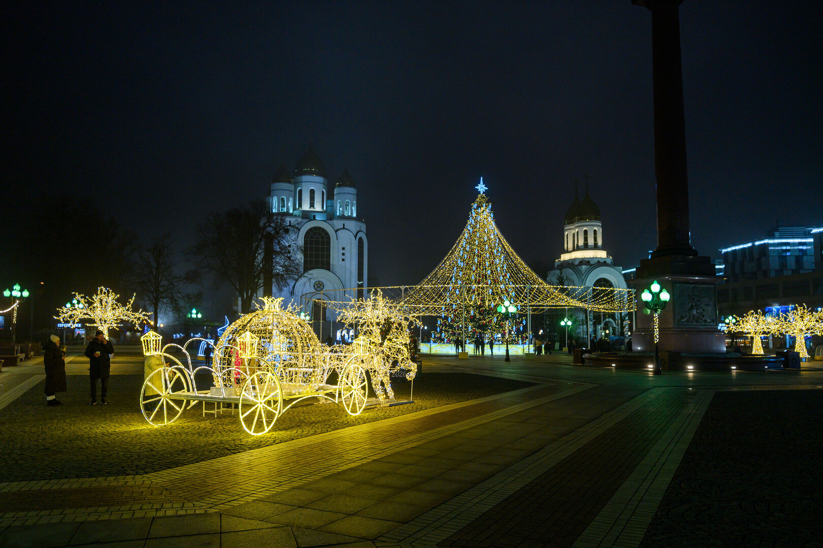 На площади появились новые цифры 2026, арка, кареты с лошадьми, ангелы, световые деревья.