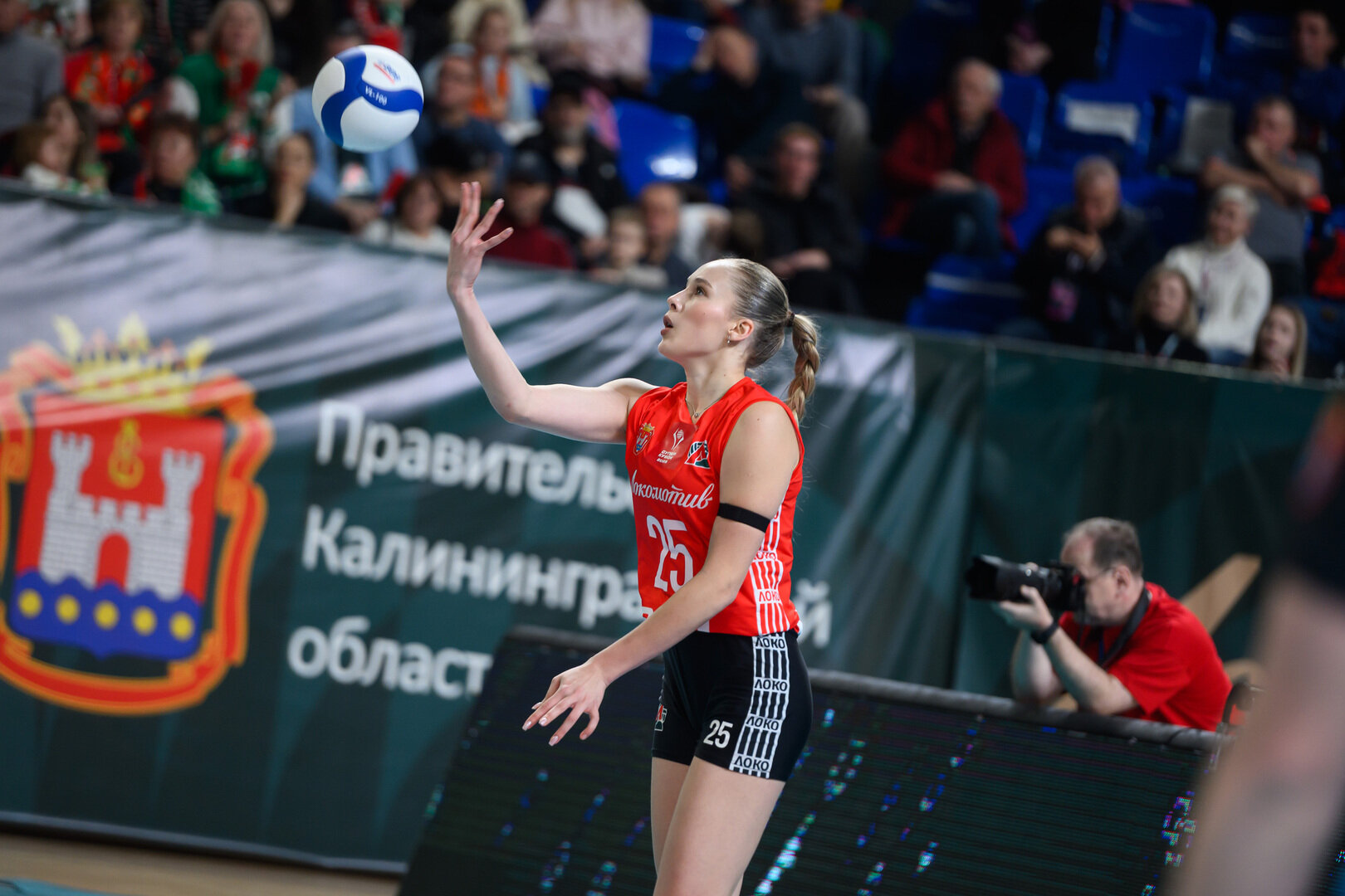 В первой партии команды долго шли ровно, не отпуская друг друга в отрыв. У калининградок классно сыграли бразильянка Киси и Полина Беликова, которая отметилась не только атаками, но и эйсами. У гостей блеснула бывшая волейболистка «Локо» Юлия Максимова. Хороша была и опытная Ольга Бирюкова. После атаки Киси «Локомотив» повел 21:19. Казалось, вот он шанс взять сет. Но «Локо» использовать его не смог. Подмосковная команда забила несколько мячей подряд, довела партию до «больше — меньше» и выиграла 29:27.