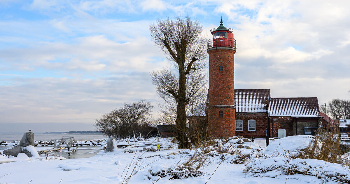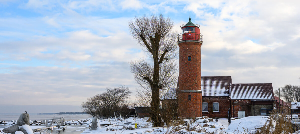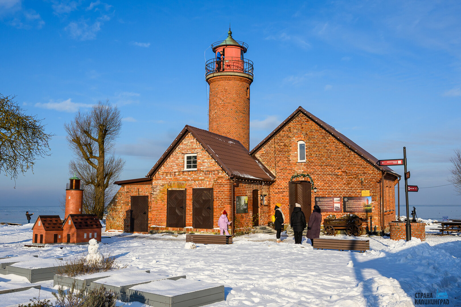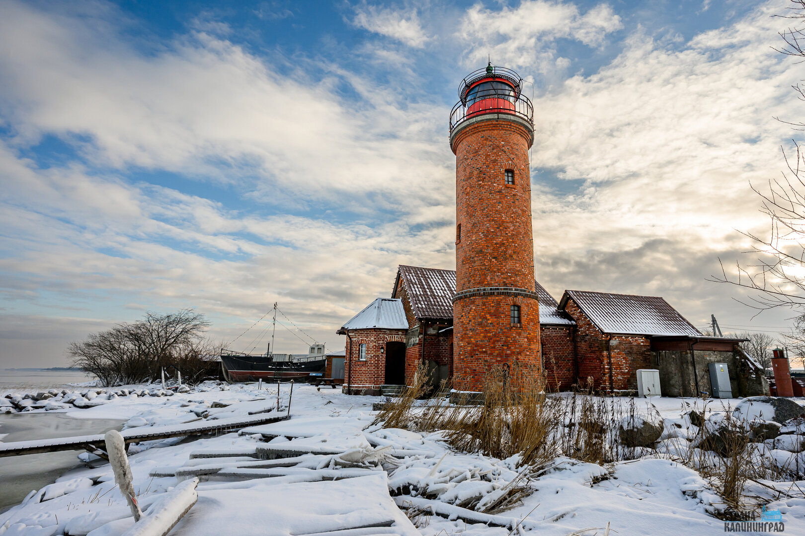 В Калининградской области сохранились всего три маяка довоенной постройки. Один из них расположен в посёлке Заливино Полесского округа и входит в состав Музея Мирового океана. Маяк начал работу в XIX веке: сначала это был керосиновый фонарь на деревянной штанге, позднее на его месте возвели кирпичное здание, сохранившееся до наших дней. Сегодня маяк открыт для посетителей — здесь можно подняться на башню и осмотреть экспозицию, размещённую в доме смотрителя рядом. Заливинский маяк этой снежной зимой - в нашей фотоподборке.