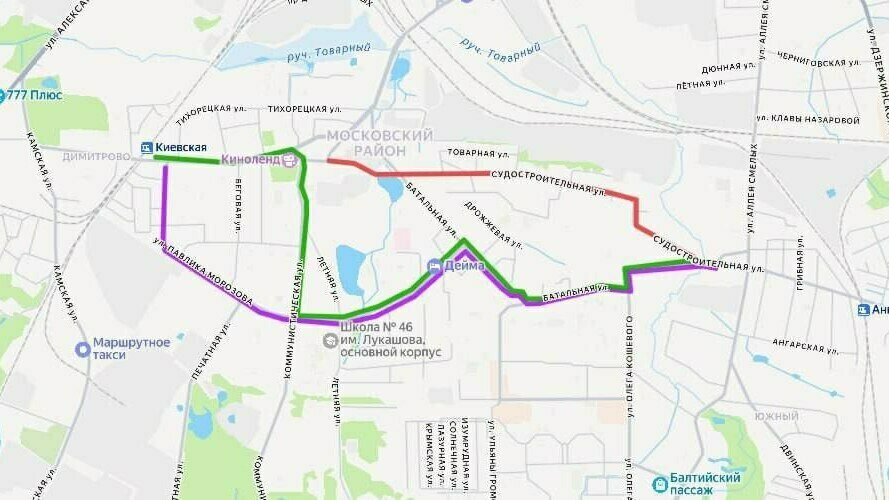 •Автобусы маршрута №39 и №72, следующие с ул. Павлика Морозова, направляют по ул. Павлика Морозова - ул. Автомобильной - ул. Батальной - ул. Олега Кошевого - ул. Батальной. В обратном направлении по ул. Батальной - ул. Олега Кошевого - ул. Батальной - ул. Автомобильной - ул. Коммунистической. Исключено движение по ул. Судостроительной.