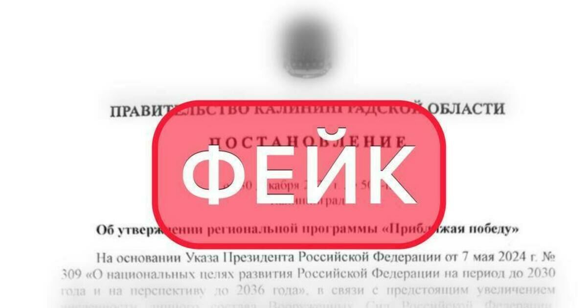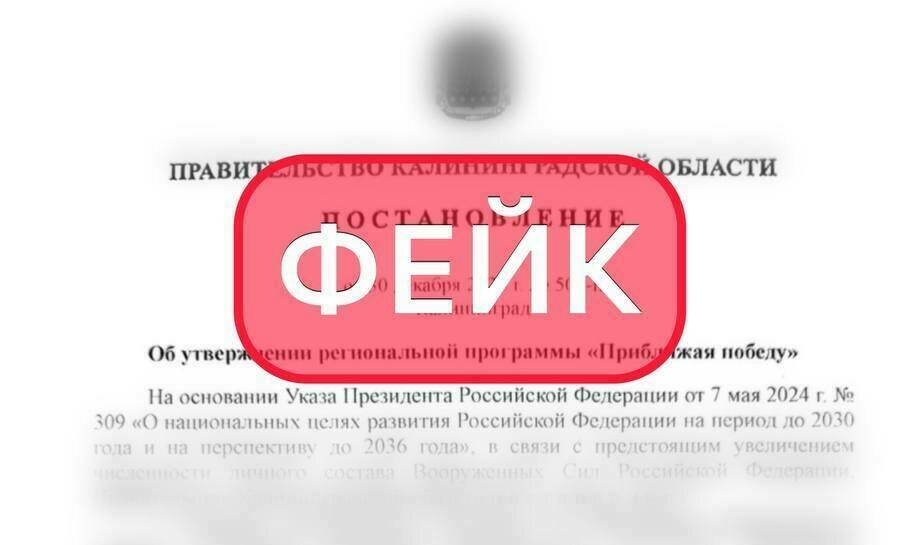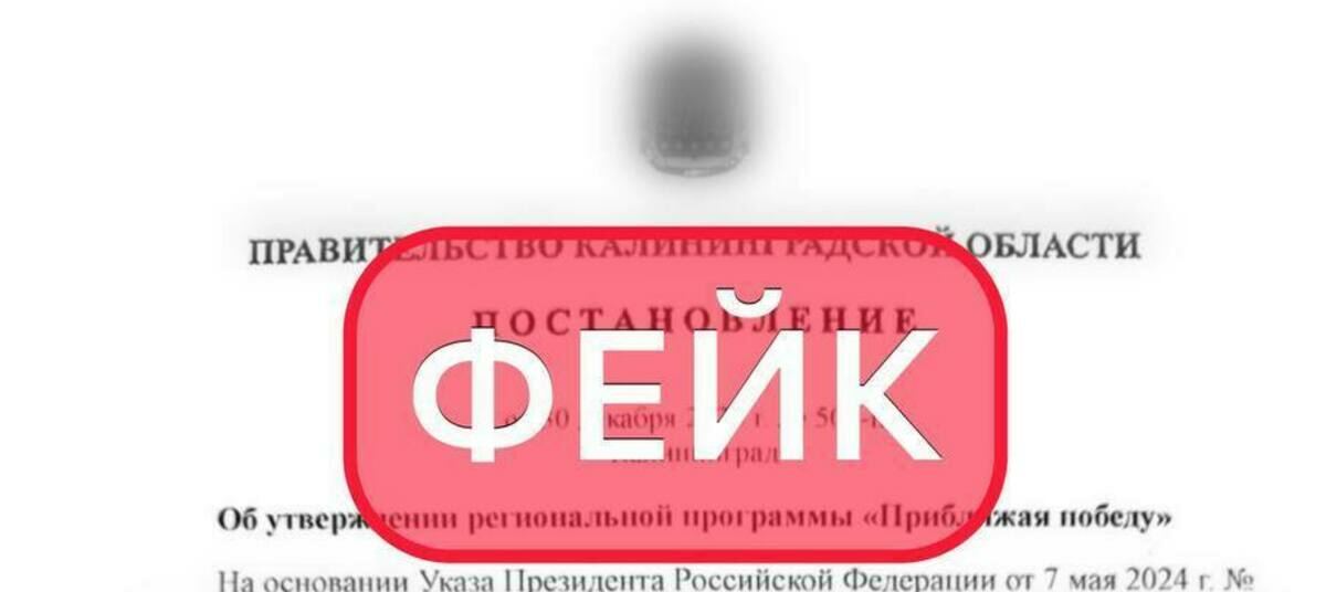 В социальных сетях и мессенджерах распространяется поддельное изображение, якобы являющееся постановлением Правительства Калининградской области № 504-п от 30 декабря 2025 года «Об утверждении региональной программы «Приближая победу»».