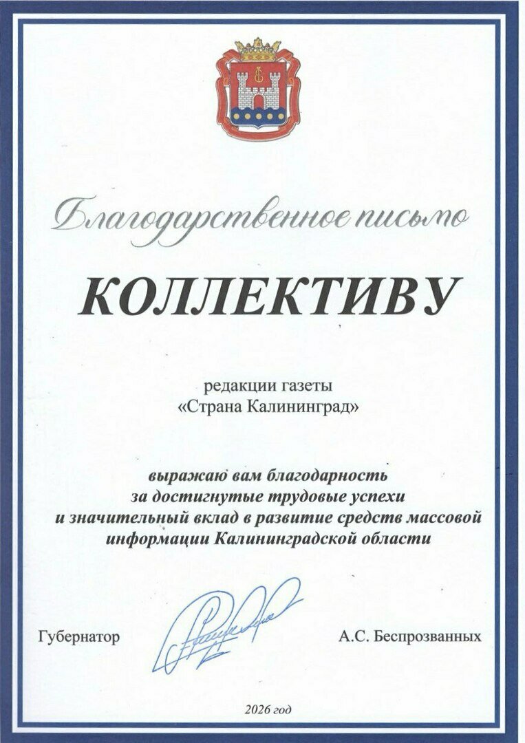 В честь Дня печати за добросовестный труд в развитии журналистики региональные СМИ были отмечены благодарственными письмами губернатора. В числе награждённых — и «Страна Калининград».