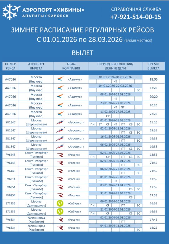 Маршрут Калининград — Апатиты был включён в перечень субсидируемых на 2026 год. В декабре 2025 года сообщалось, что рейсы будет выполнять авиакомпания «Россия» по пятницам и воскресеньям, а полётная программа рассчитана до 27 марта 2026 года, в Калининграде была развернута большая рекламная кампания этого направления.