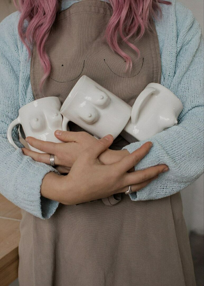 Я хотела, чтобы моя керамика выделялась. Люди на протяжении многих столетий воспевают красоту женского тела: в скульптурах, картинах. Наши кружки, как любая девушка, уникальны и неповторимы. У них разная форма, объем и размер. У каждой кружки в коллекции есть имя. Популярные – Вера, Надежда и Любовь.