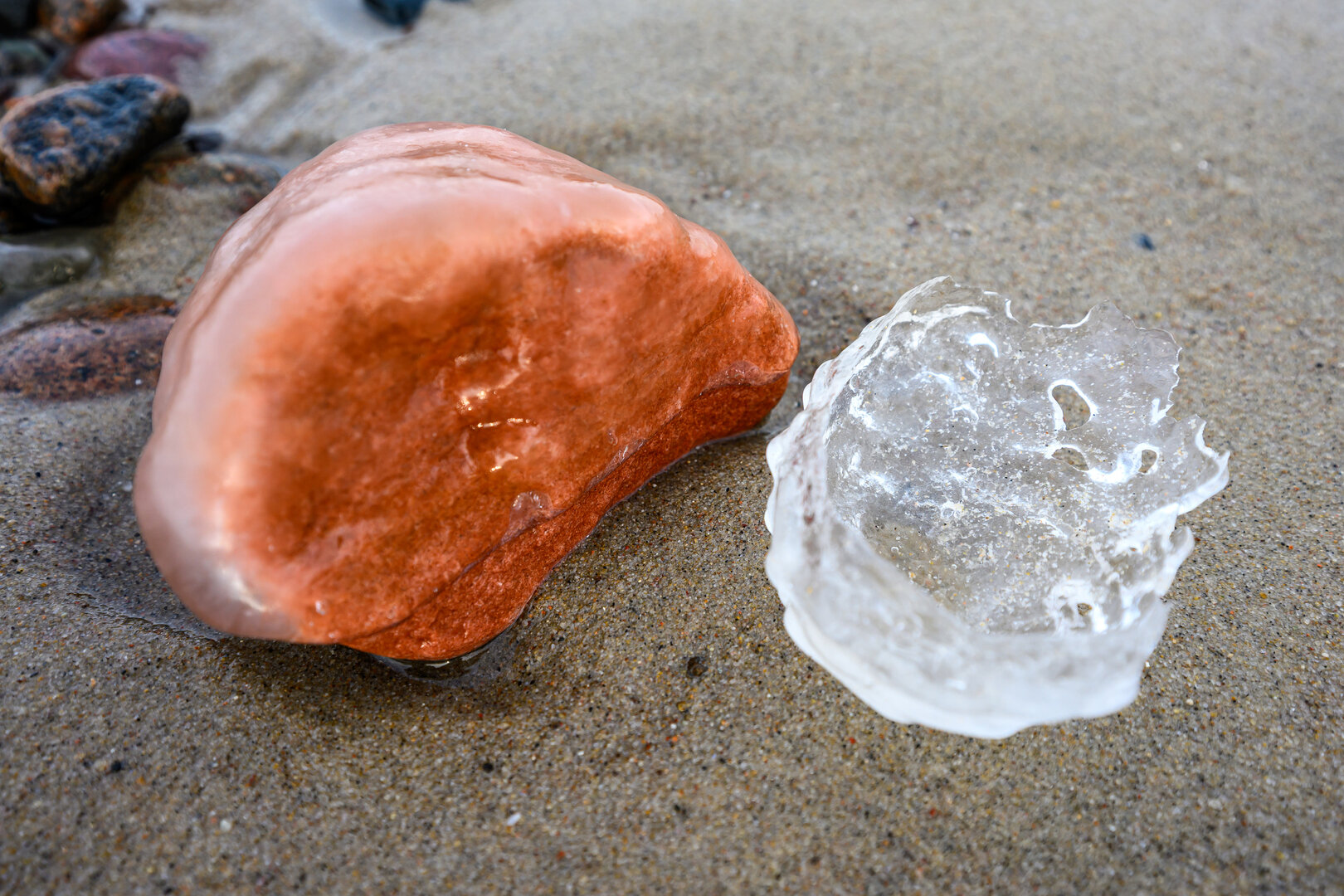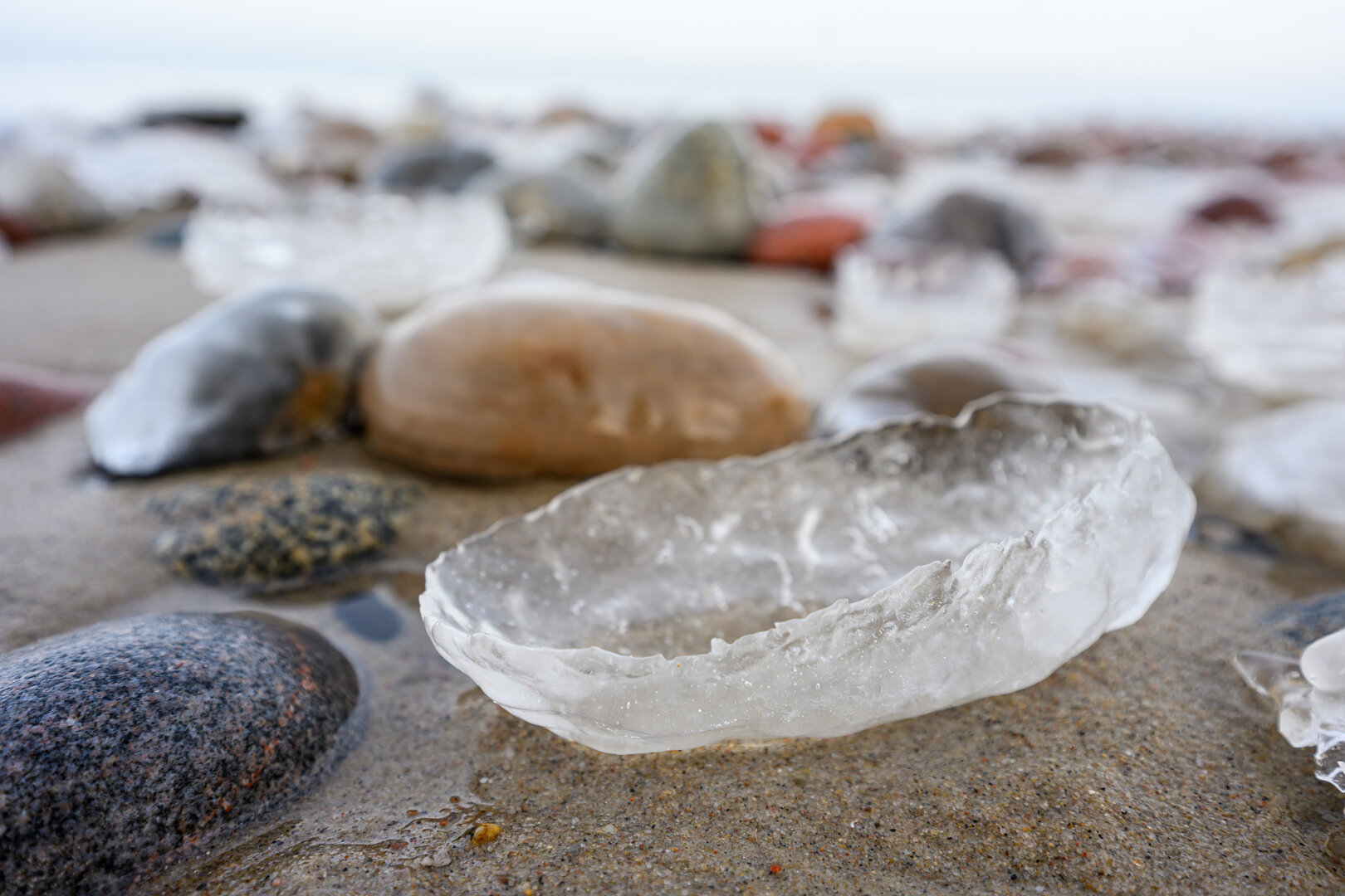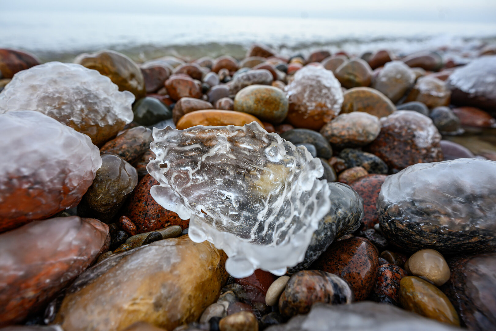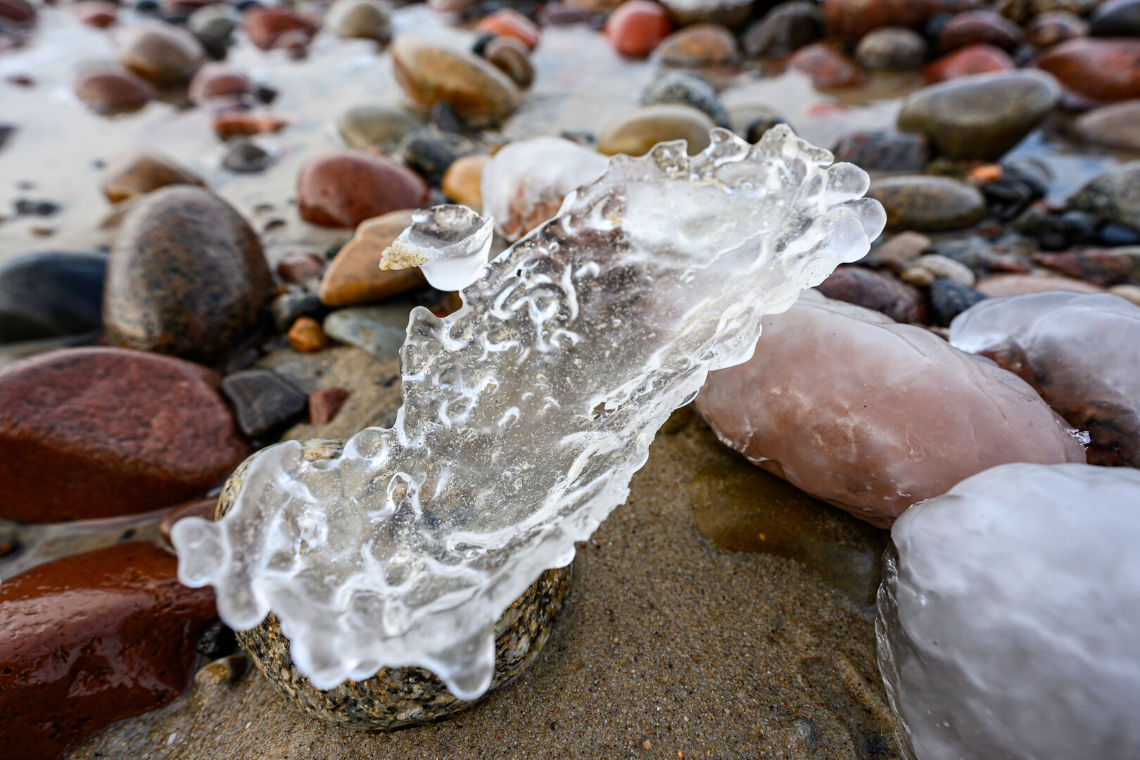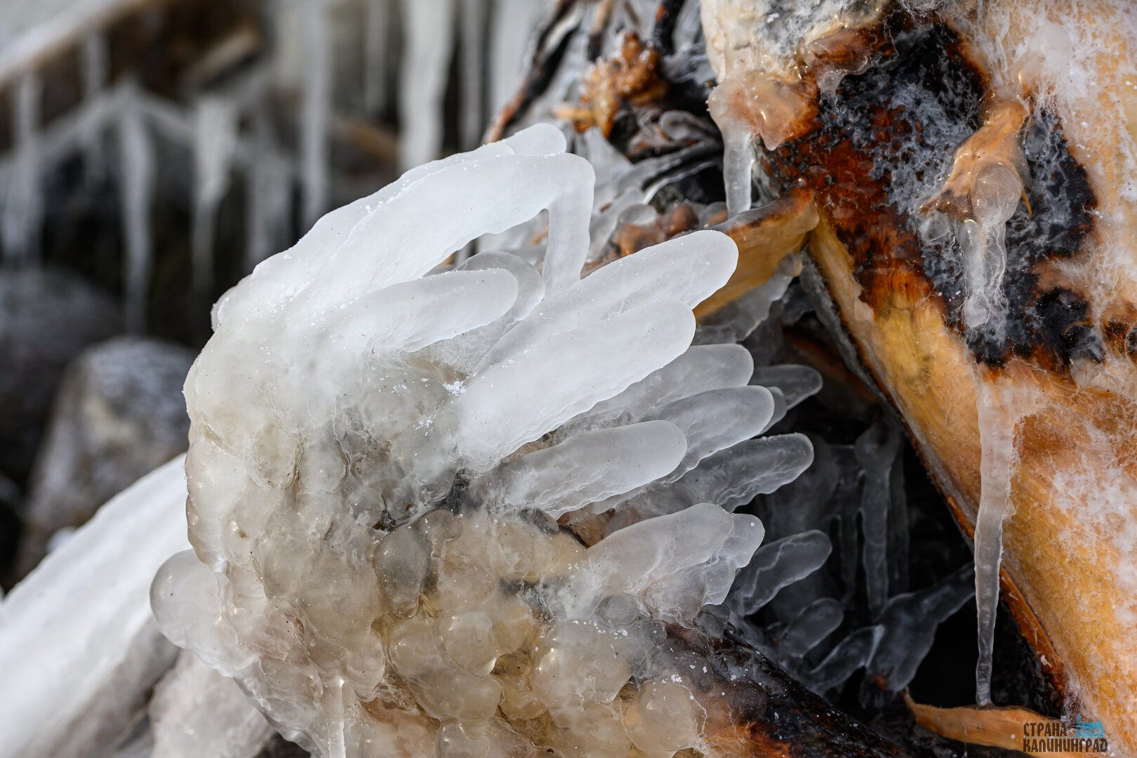 Морозная погода превратила побережье Балтийского моря в череду ледяных форм и природных узоров. Камни, песок и выброшенные морем предметы оказались скованы льдом. Наш фотокорреспондент Александр Мелехов побывал на побережье в районе поселка Куликово под Зеленоградском. Посмотрите, какая красота!
