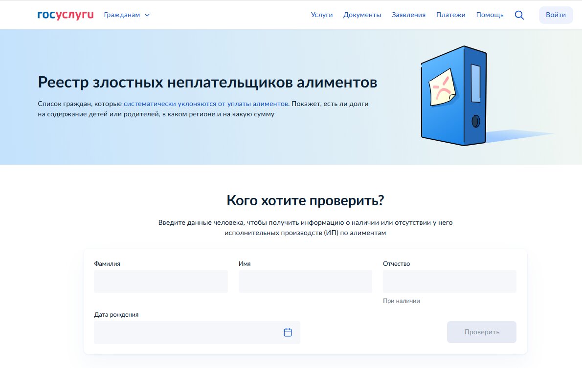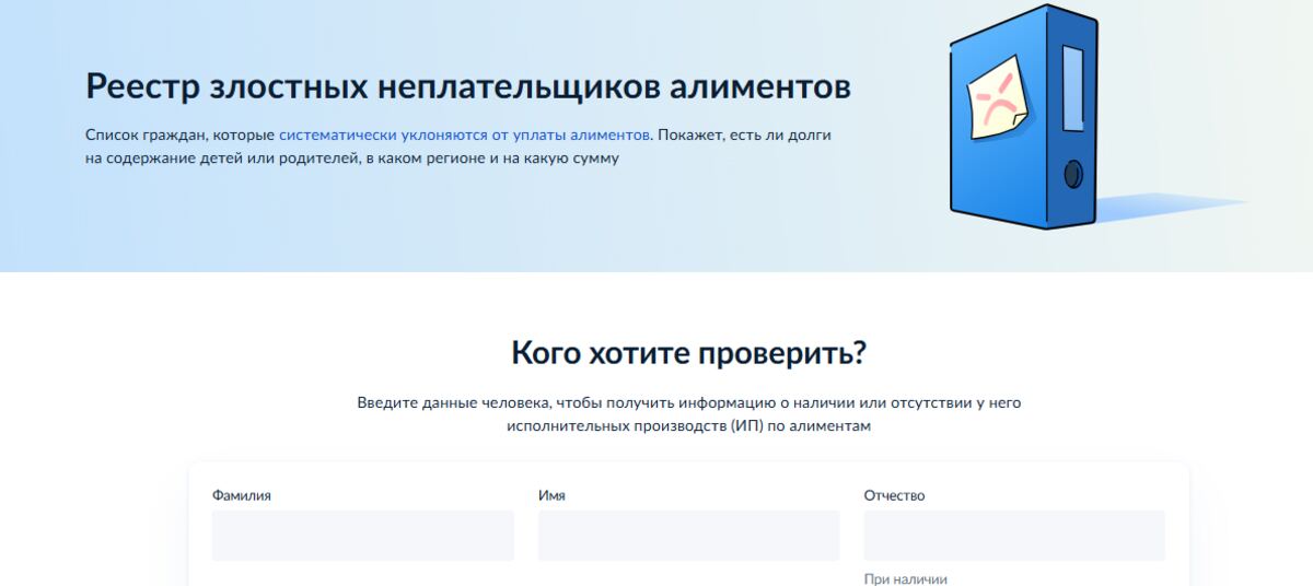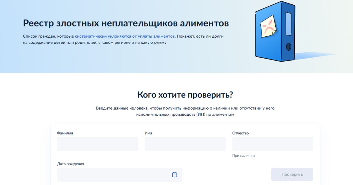 Проверить наличие долгов по алиментам теперь можно онлайн — по фамилии и дате рождения.