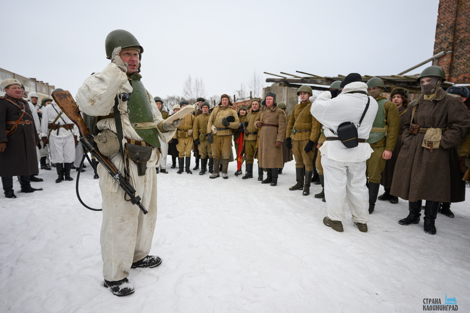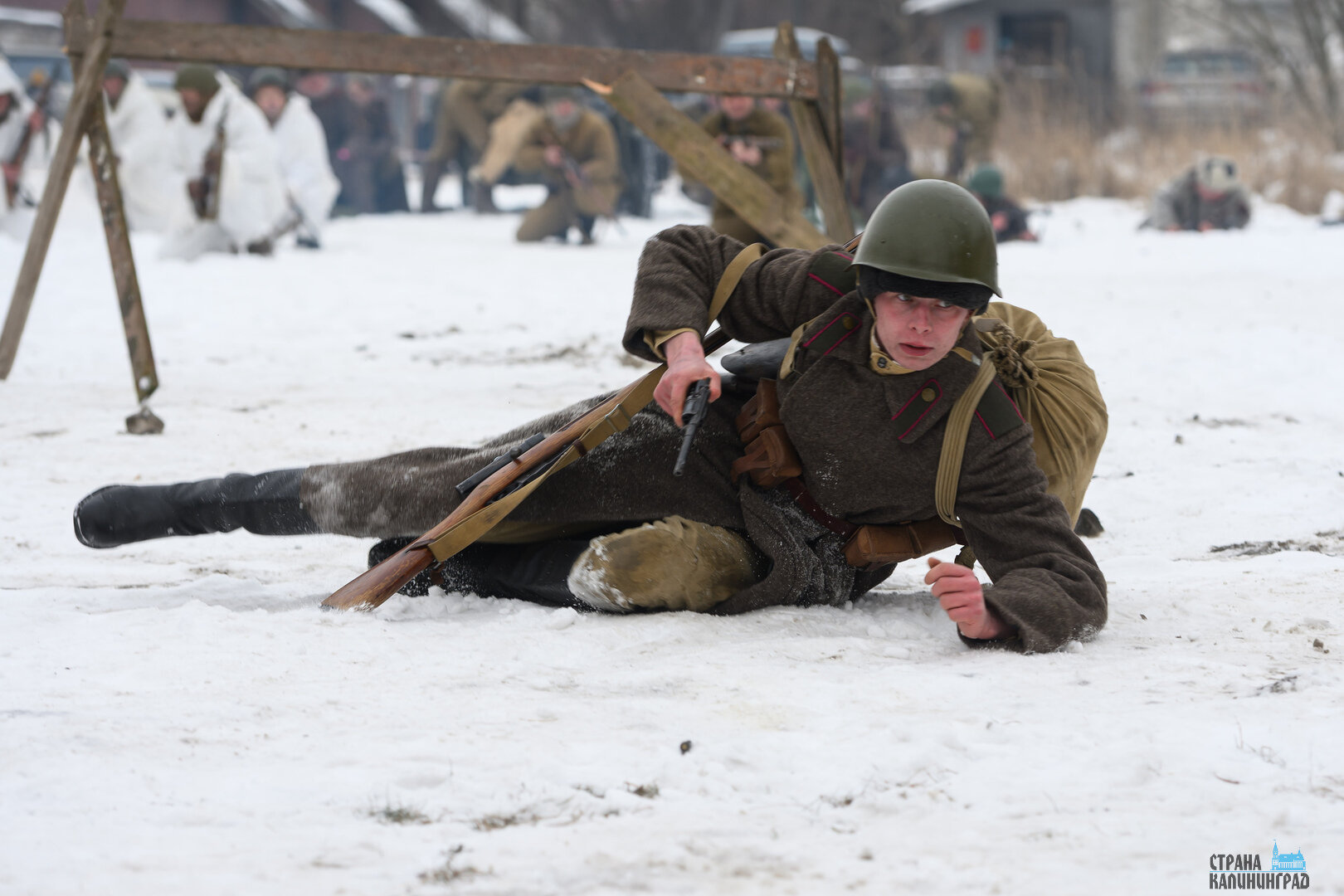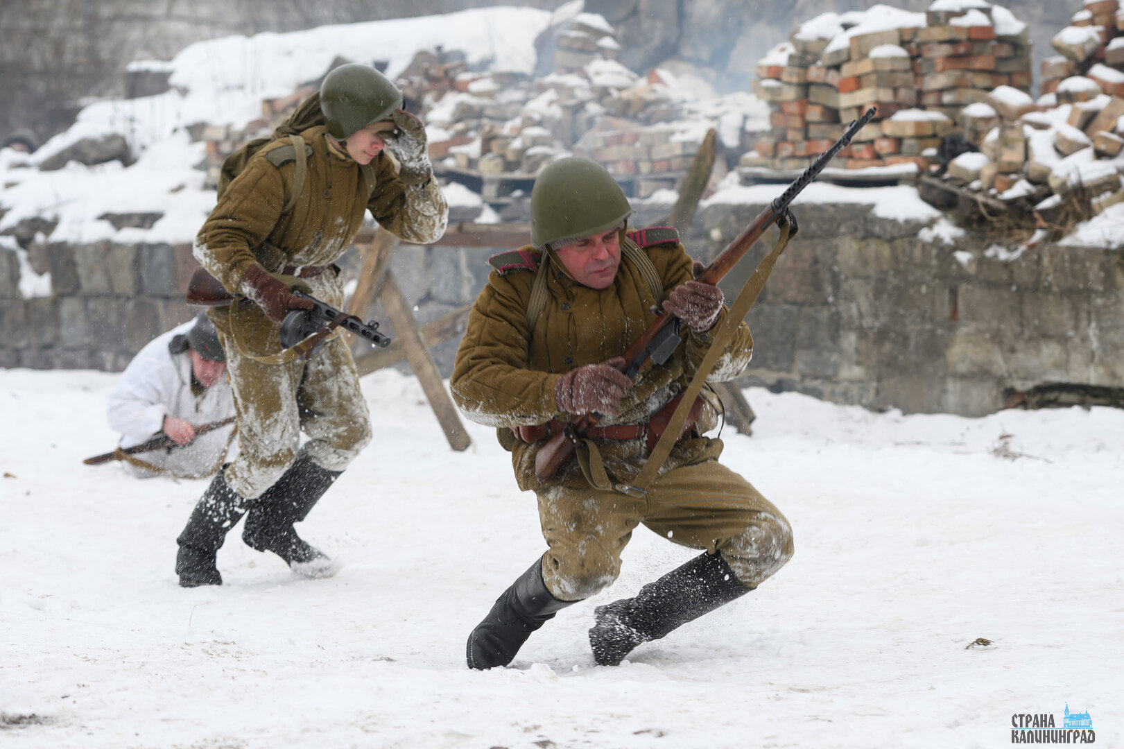 Снег под ногами, короткие перебежки, укрытия из подручных материалов и напряжение, которое чувствуется даже через объектив камеры. 25 января в Полесске реконструкторы воссоздали один из эпизодов уличных боёв штурма Лабиау — ключевого момента Инстербургско-Кёнигсбергской операции.