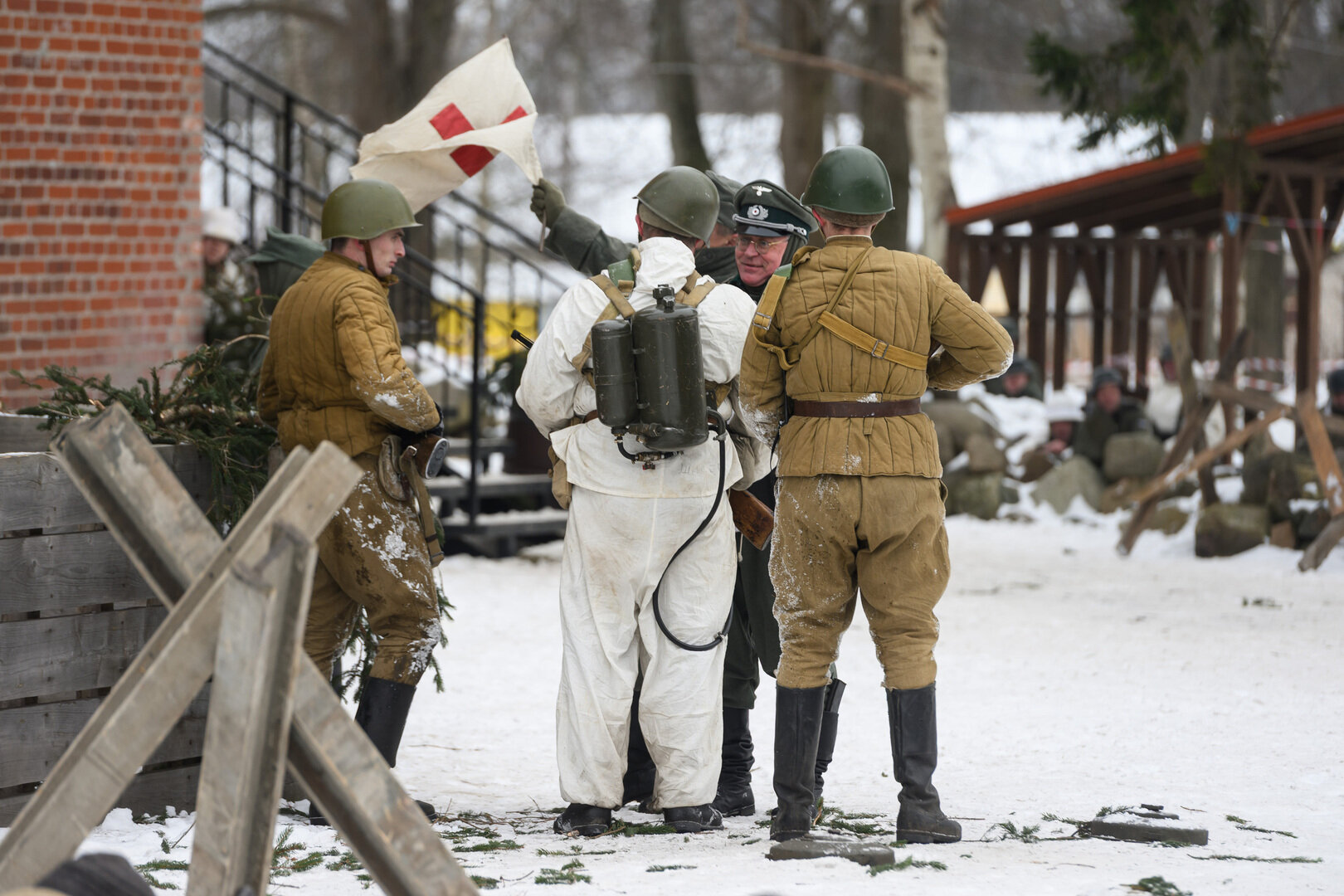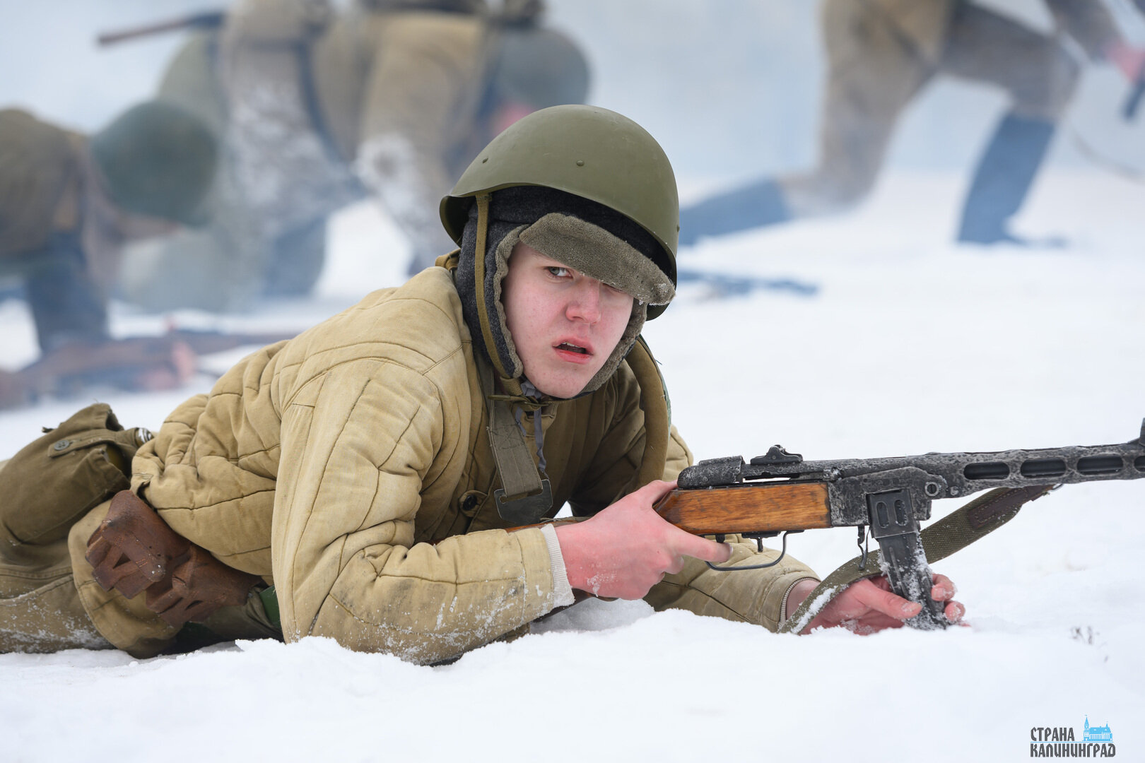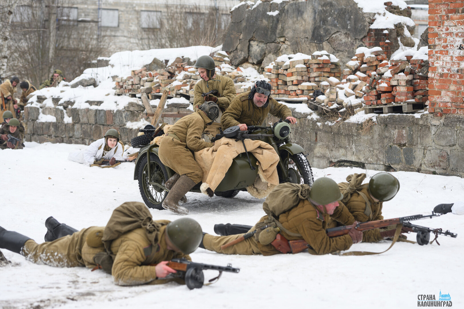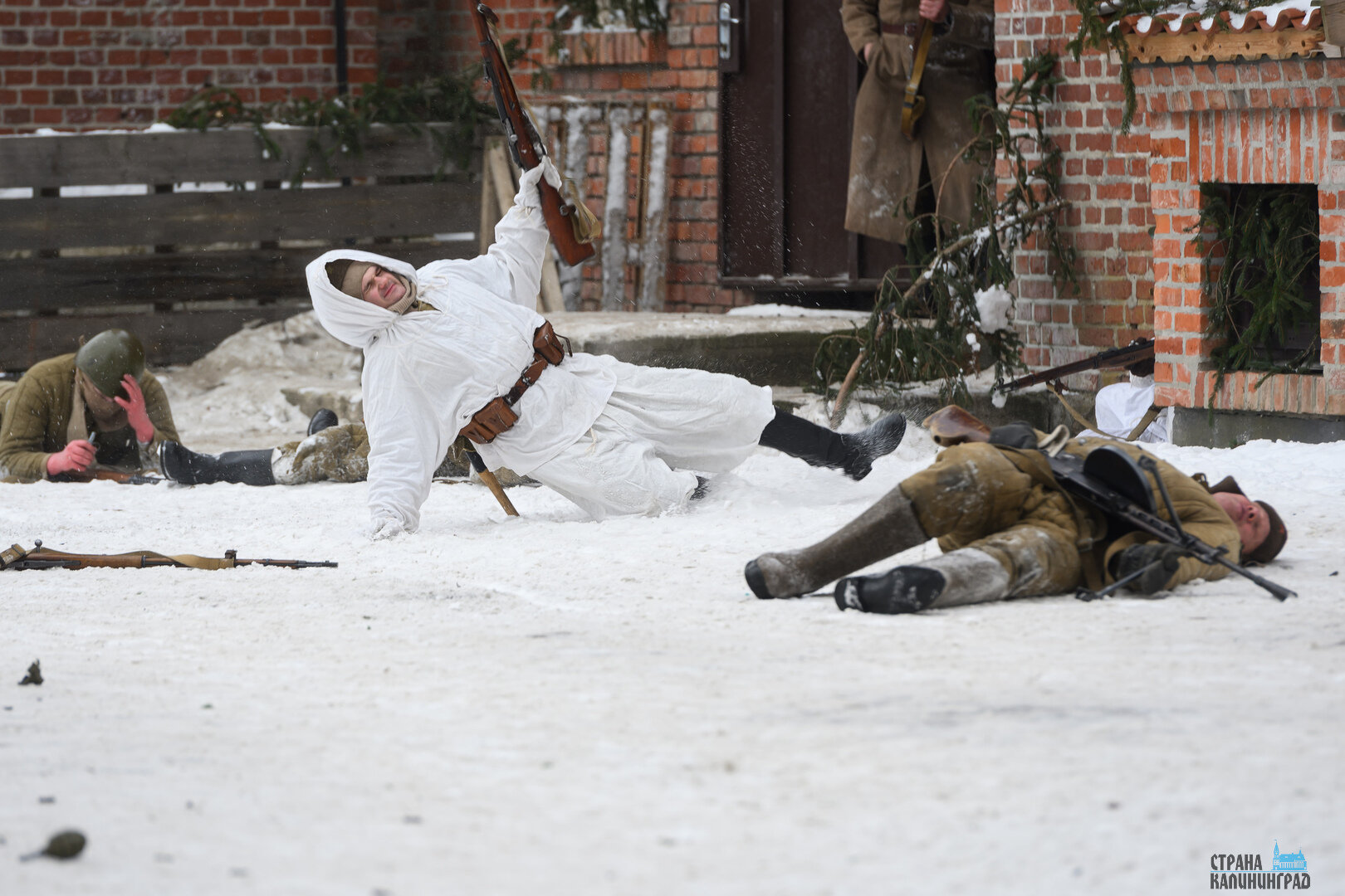 Снег под ногами, короткие перебежки, укрытия из подручных материалов и напряжение, которое чувствуется даже через объектив камеры. 25 января в Полесске реконструкторы воссоздали один из эпизодов уличных боёв штурма Лабиау — ключевого момента Инстербургско-Кёнигсбергской операции.