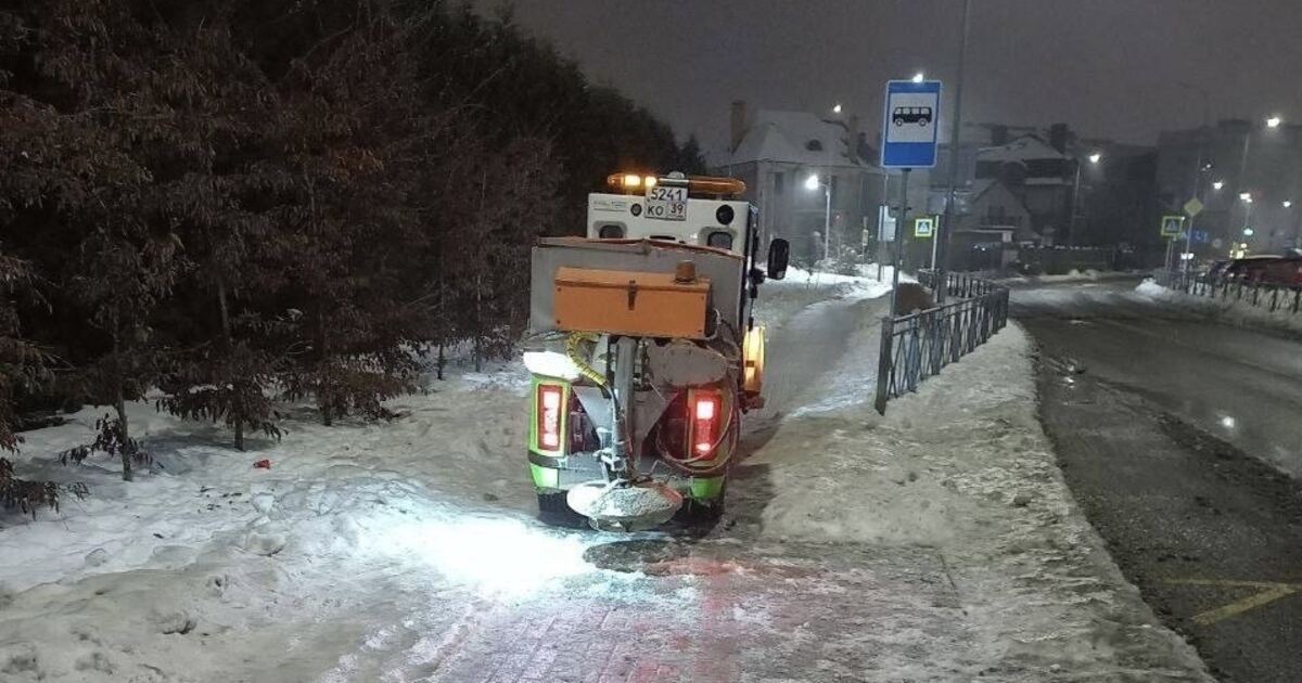 Коммунальщики трудились всю ночь, но мешал дожь, который тут же превращался в наледь, и осадки закончились только к утру.