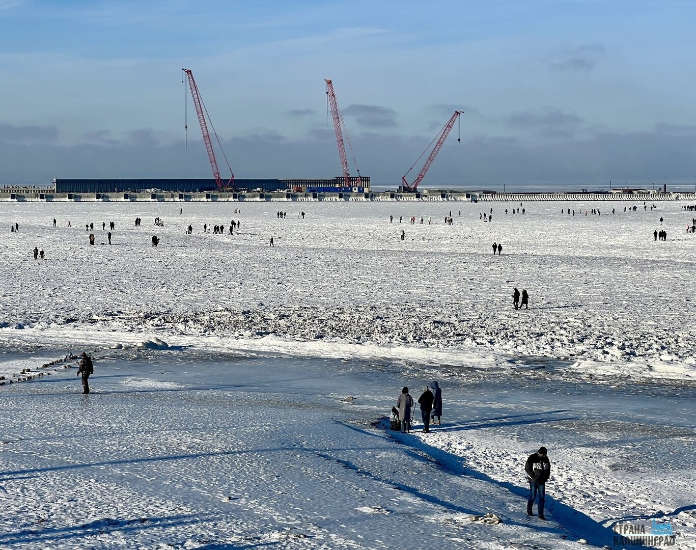 Этой зимой Балтика замерзла, и увидеть такое чудо хотят многие. Калининградцы семьями приезжают на побережье и гуляют по льду. Особенно много людей в районе порта в Пионерском: там вода замёрзла до горизонта.