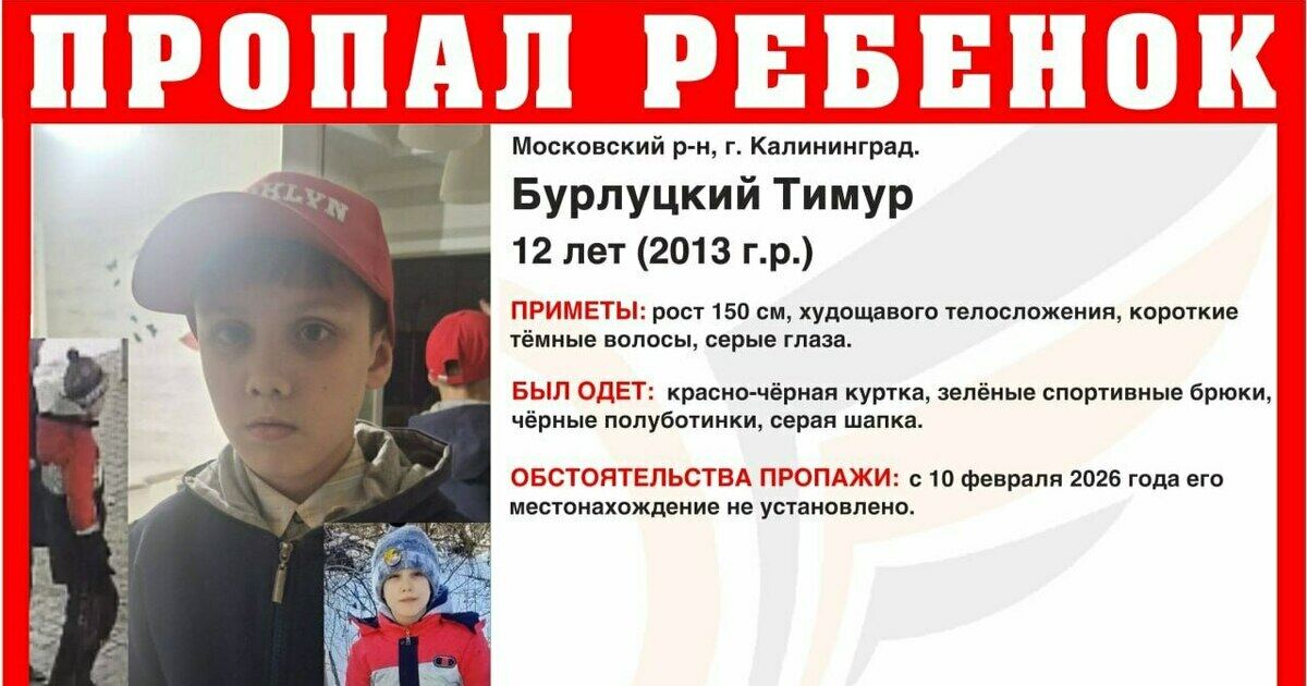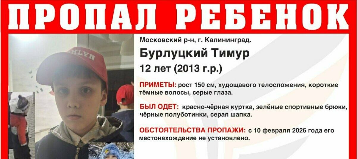 В Калининграде продолжаются поиски 12-летнего Тимура Бурлуцкого, который 10 февраля около 10.30 ушёл из школы на ул. Подполковника Емельянова в неизвестном направлении. До настоящего времени его местонахождение не установлено.