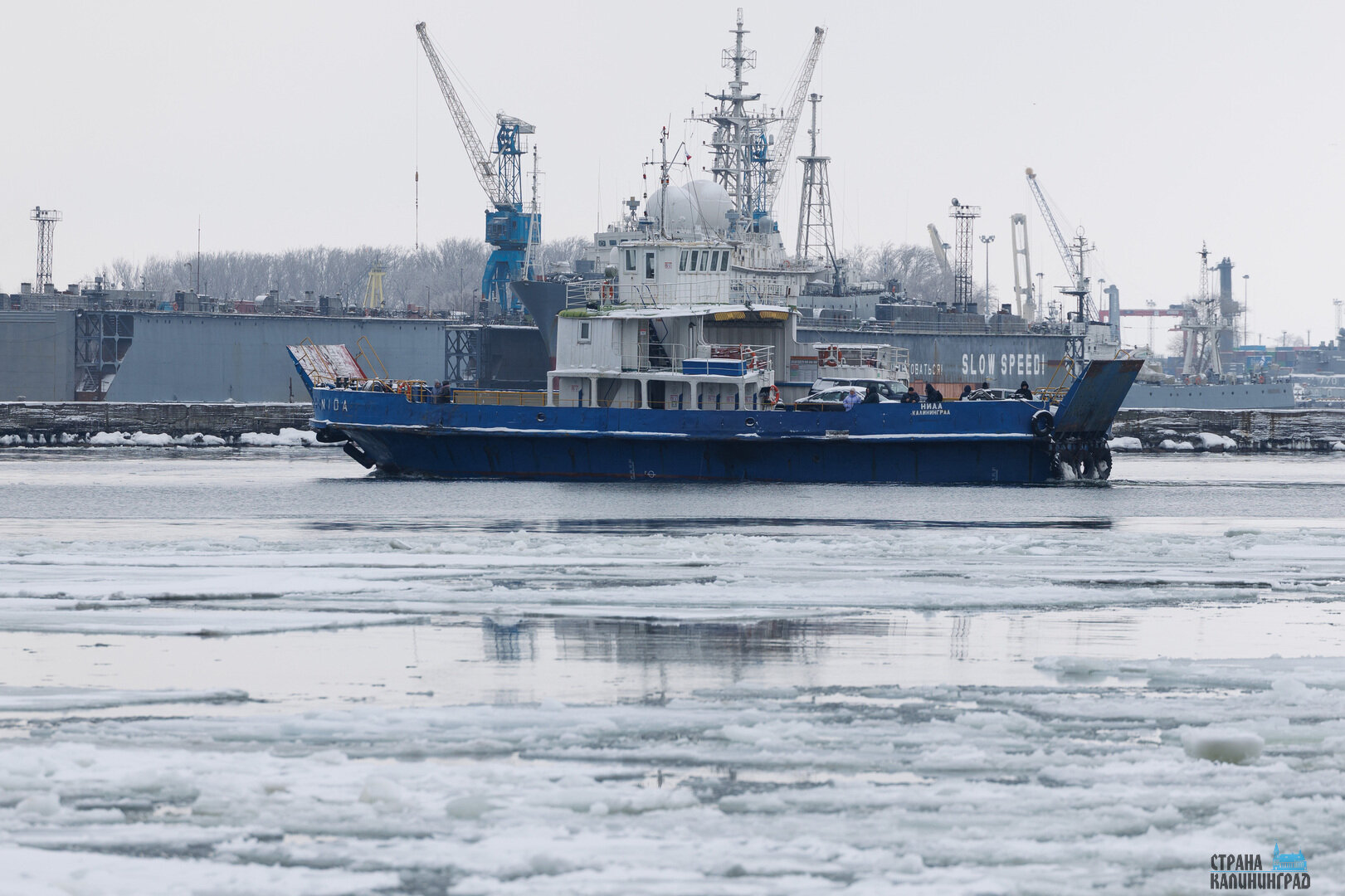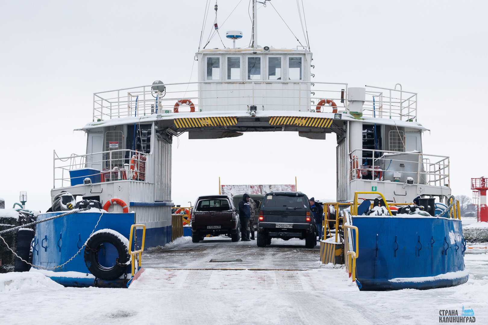 Проблемы с паромом на Балтийскую косу продолжаются. Из-за ухудшения ледовой обстановки с воскресенья, 15 февраля, судно подходит к причалам носовой частью, а машинам приходится съезжать с него задним ходом.
