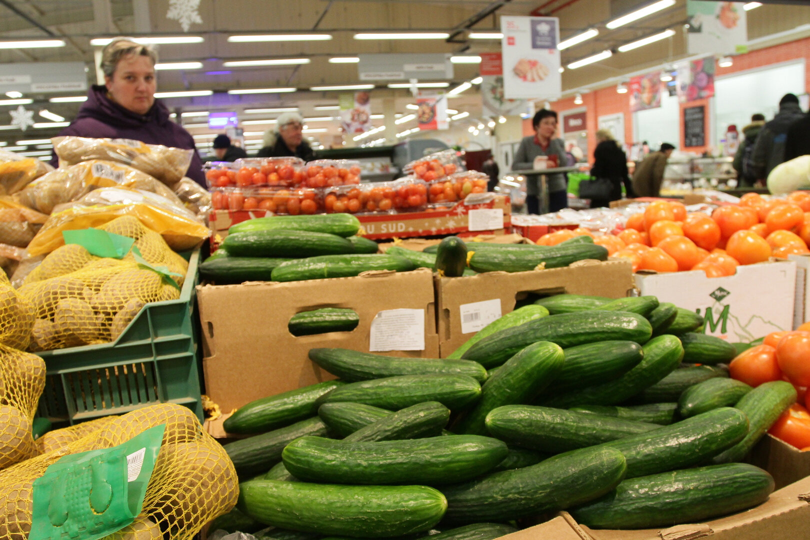 Своих огурцов зимой у нас нет — в Калининградской области в теплицах огурцы не выращивают, затраты на них будут неподъемными. Так что везут их в регион с юга (где они, впрочем, тоже сейчас дорогие).