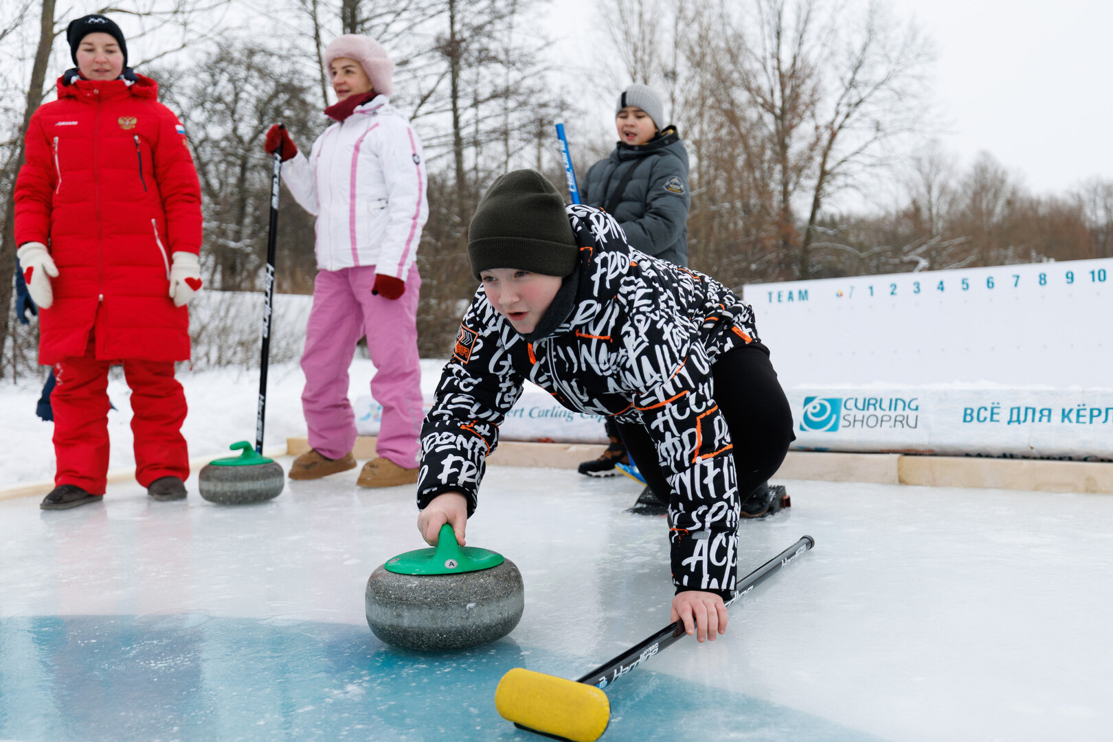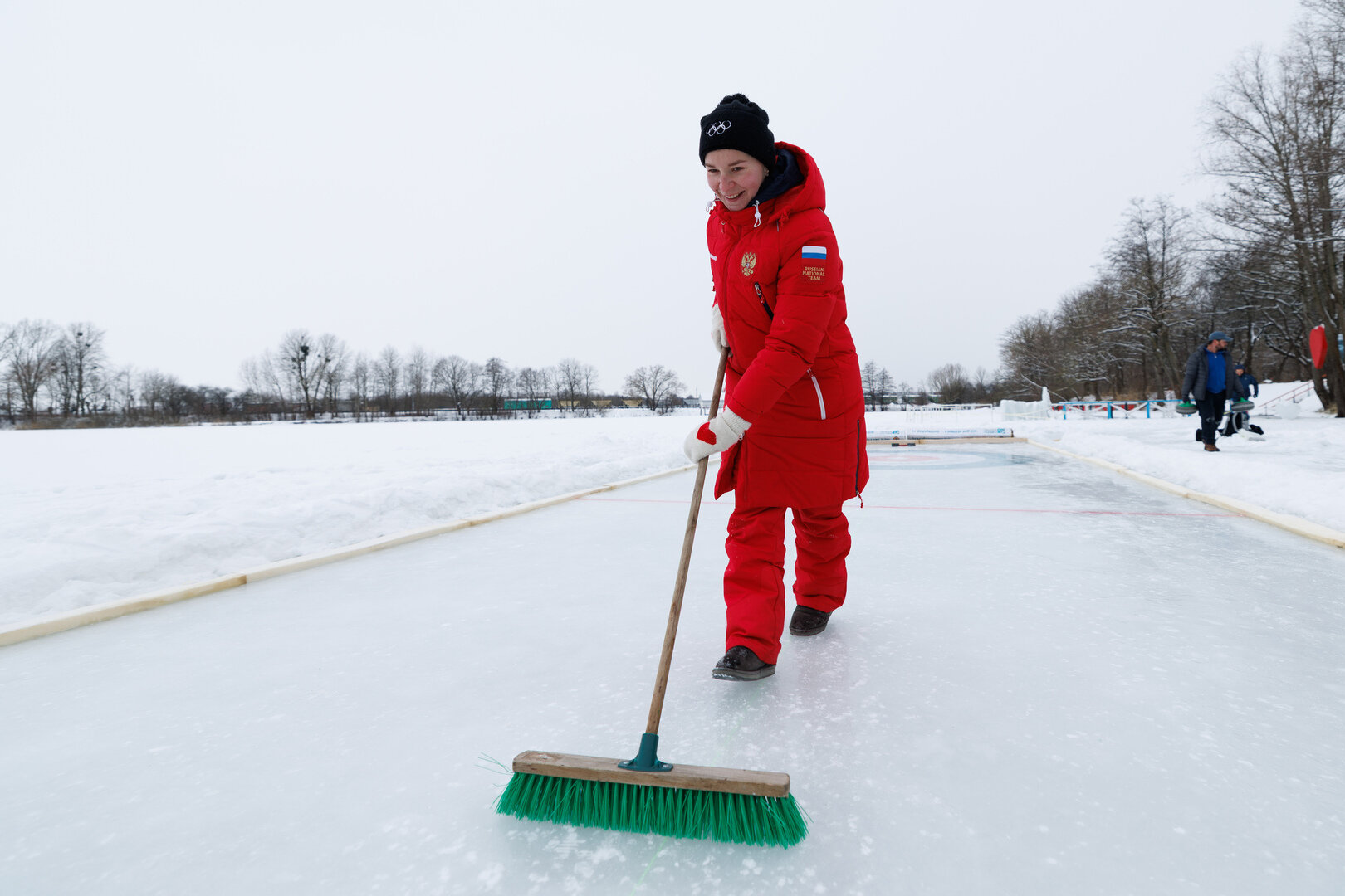 Первоначально площадку под «кёрлинг-дром» подготовил Денис Шевень, но вид практически полноценной олимпийской дорожки ей придал Павел Колобухов. Понадобилось три дня, нескончаемый объём воды, авторские нетривиальные решения и бесконечное терпение.