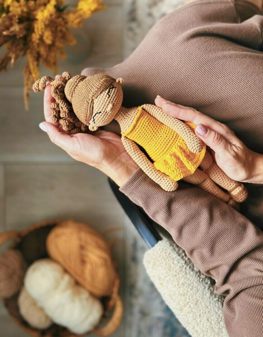 – Первую игрушку связала в 2019 году. Ждала второго ребёнка, сына, и захотелось связать к его рождению игрушку. На тот момент крючком вязать вообще не умела, только спицами. Нашла бесплатную инструкцию, купила пряжу, и попробовала. Сейчас смотрю на эту игрушку – она такая несуразная, смешная, но милая, и всегда появляются теплые воспоминания. Это был голубой мишка. Голубой, наверное, потому, что я ждала мальчика. Вот так из трепетного ожидания малыша родилась любовь к вязанию.