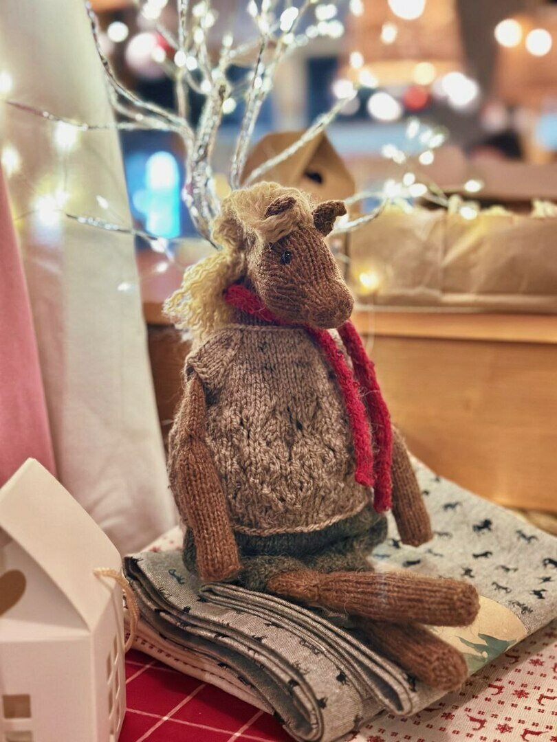 Перед Новым годом написала девушка, видимо, рекламный менеджер калининградского бренда марципанов. У бренда есть герои, кошечка и оленёнок. Девушка попросила связать их в подарок для основателей бренда, двух взрослых братьев. Мы вместе делали проект: она прислала фотографии, картинки этих животных, и я по ним воплощала идею в жизнь. Потом мне сказали, что братья были приятно удивлены.