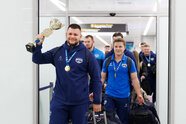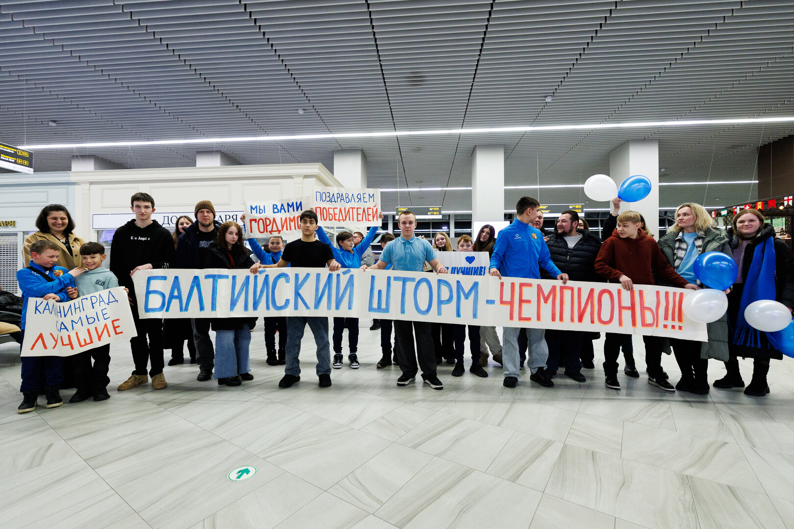 Из-за закрывавшегося неба над Москвой 22 февраля «Балтийский Шторм» прибыл в «Храброво» с задержкой почти на пять часов. Что не помешало преданным поклонникам всё-равно найти возможность встретить чемпионов. Приехали даже, а скорее тем более, представители Советска, ведь «покорителем Казани» стал советчанин Кирилл Онищенко.