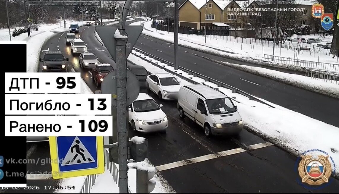 Итоги двух месяцев на дорогах Калининградской области выглядят печально. С начала 2026 года случились 95 аварий с пострадавшими. Как сообщает в своём тг-канале областная Госавтоинспекция, в результате 109 человек ранены и 13 погибли.