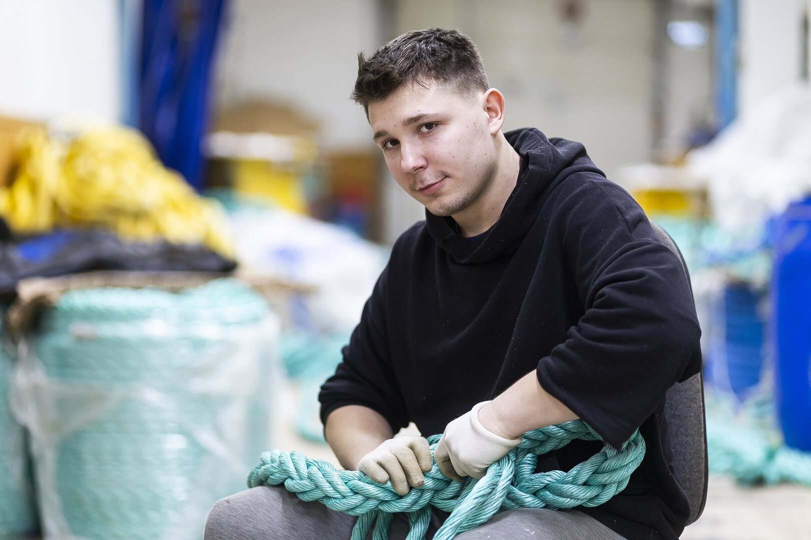 — Давно слышал об этом предприятии. Решил прийти сюда и не жалею. Мне нравится, что зарплату получаем в строго установленный день. Нравится, что коллектив дружный. Нравится, как из маленьких операций вырастает огромный трал, который затем в море помогает рыбакам. Так что всё супер!