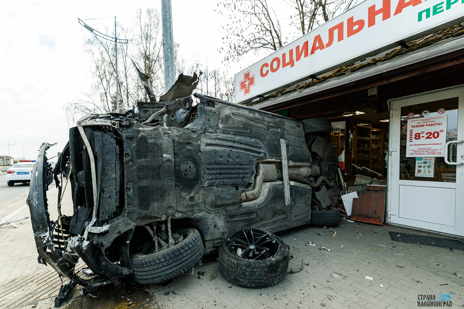 ДТП произошло на пересечении Калининградского шоссе и улицы Советской. Этот перекрёсток местные жители называют проклятым, ведь эта авария там далеко не первая. Прошлая была буквально два месяца назад, в январе (тогда автомобиль также врезался в аптеку, пострадал пешеход), а до этого – в декабре (аптеке был причинён ущерб, но тогда обошлось без пострадавших).