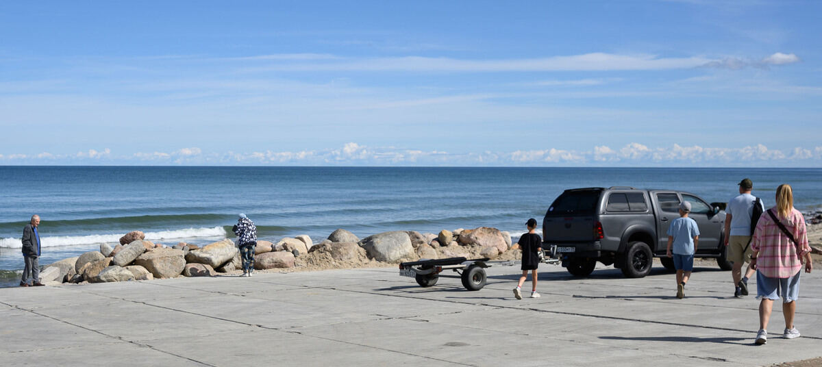 Оборудованный спуск для лодок находится в восточной части пляжа Зеленоградска, на границе с нацпарком «Куршская коса». Там есть стоянка, все удобно (кафе и станция водных видов спорта), но территория находится за забором и закрыта для свободного использования.