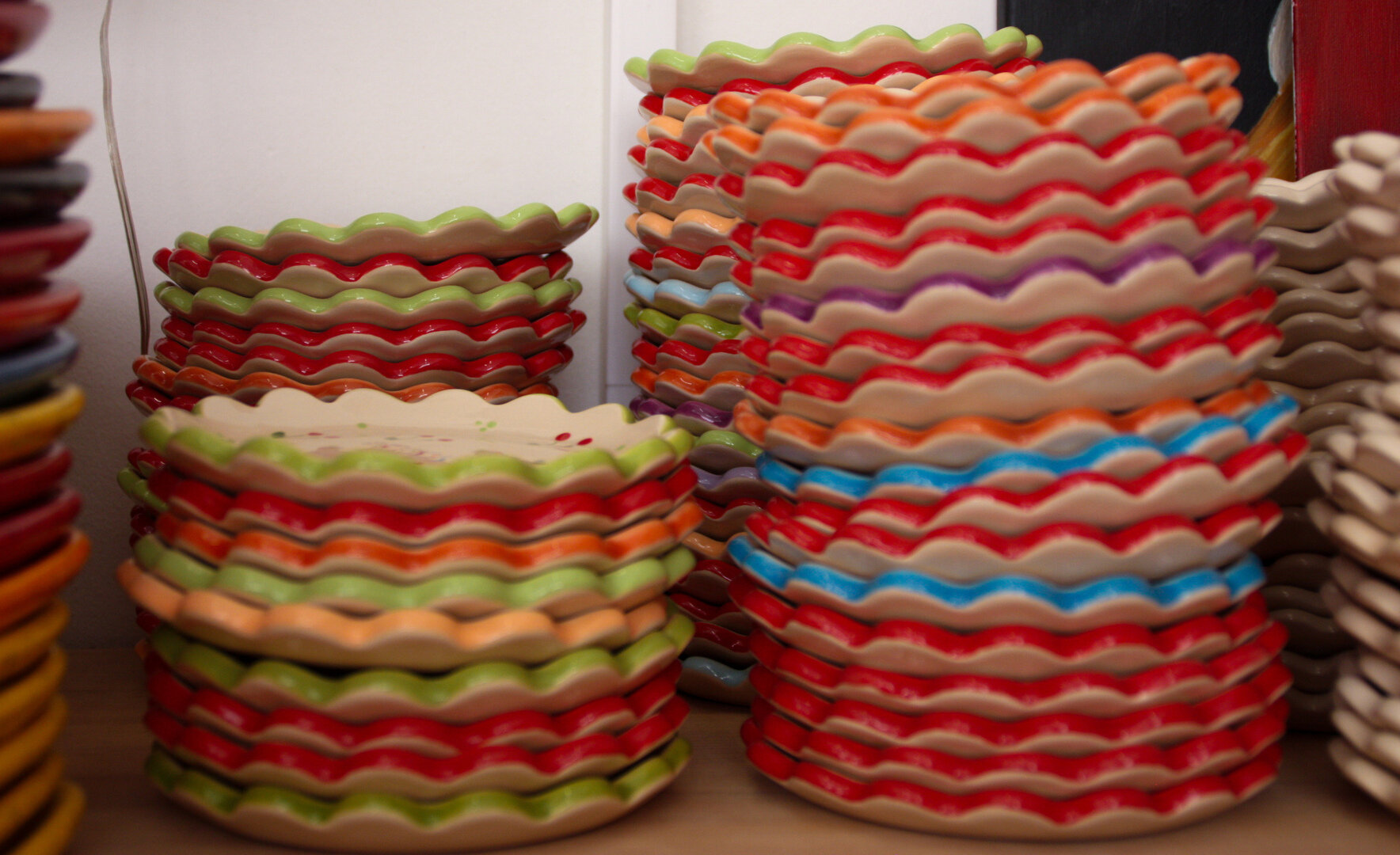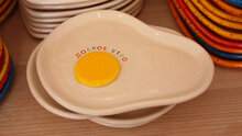 - Может показаться странным, но с круглыми тарелками много нюансов: они не хотят быть круглыми – то завалятся, то ещё что-то. Мы решили, что нужно придумывать что-то, что не будет настолько нам доставлять хлопот и выбрали кривые формы – листочки, цветочки, бутылочки, сердечки. Самые популярные формы тарелок – цветочек и сердечко.