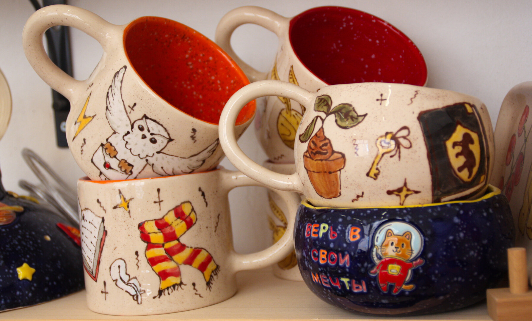 — У нас есть авторские персонажи – на брошах, тарелках и других изделиях. Но я не чувствую конкуренции: каждый мастер идёт своей дорогой.