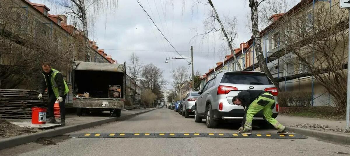 Рабочие уже оборудовали искусственные дорожные неровности и установили знаки с указанием рекомендуемой скорости на улицах: