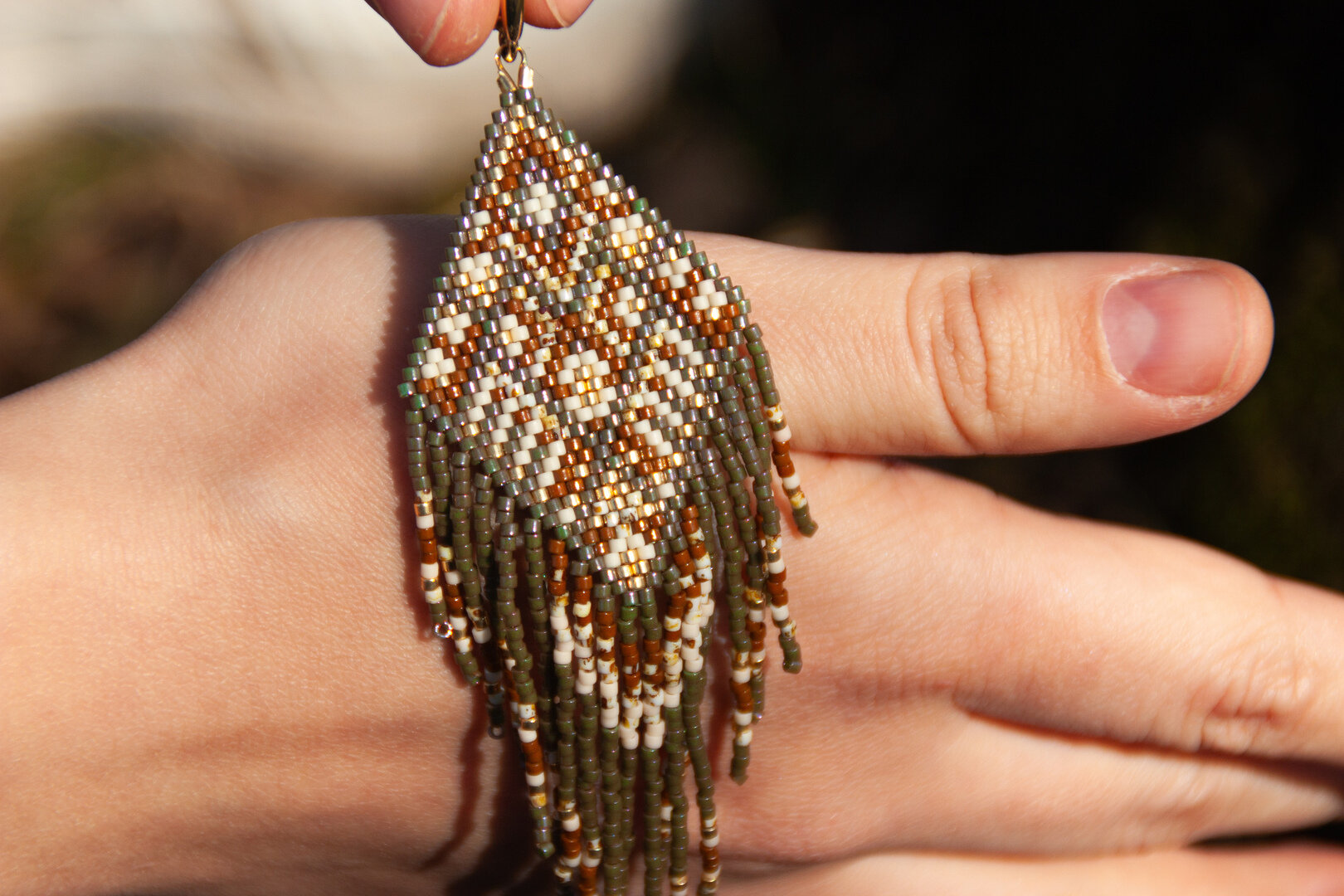 - На самом деле, когда я сделала одну пару серёжек с бахромой, то поняла, что у меня внутри горит от этого. Естественно, я видела примеры у американских мастеров – индейцев. Свои модели я разрабатываю на основе их наработок, добавляя своё видение. Мне вообще близка тематика бохо, это моя любовь.