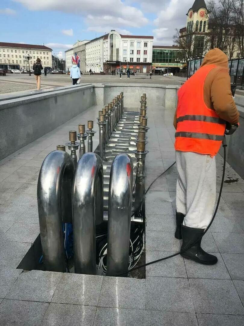 В Калининграде началась подготовка городских фонтанов к намеченному на 1 мая запуску.