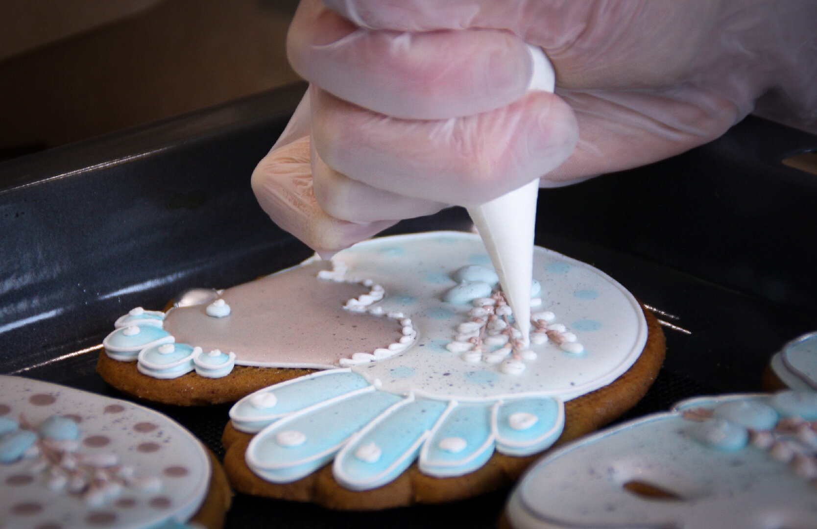 - Замешиваю тесто, карамельное, оно довольно сложное – важно сварить карамель правильной консистенции. Дальше тесту нужно время на созревание в холодильнике. Начинаю работать на следующий день. Формы вырезаются вручную, под каждый ĸонĸретный заказ. Потом следует выпечка пряника и его роспись. Если говорить в процентном соотношении, то выпечка – это всего 20%, а остальное – роспись.