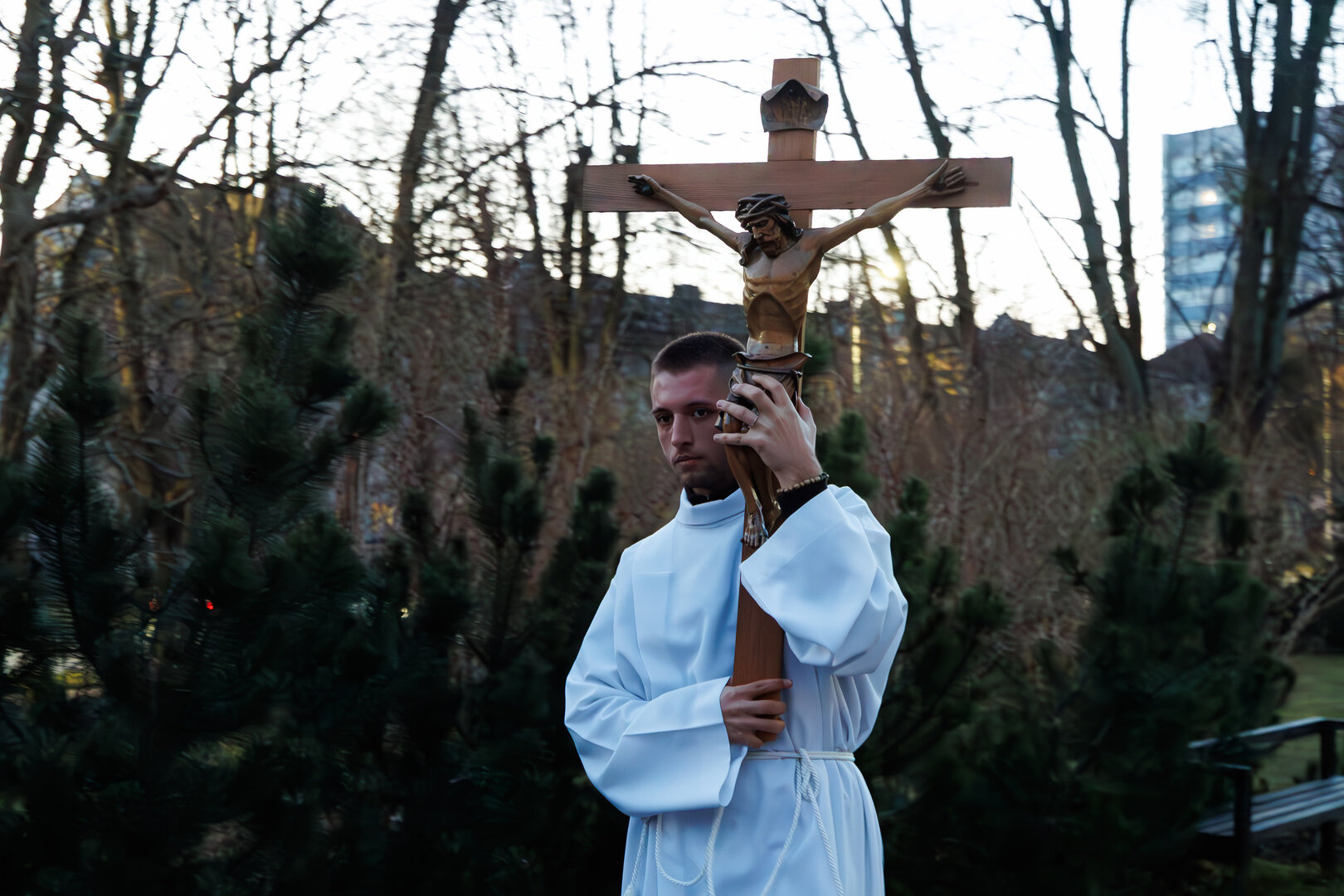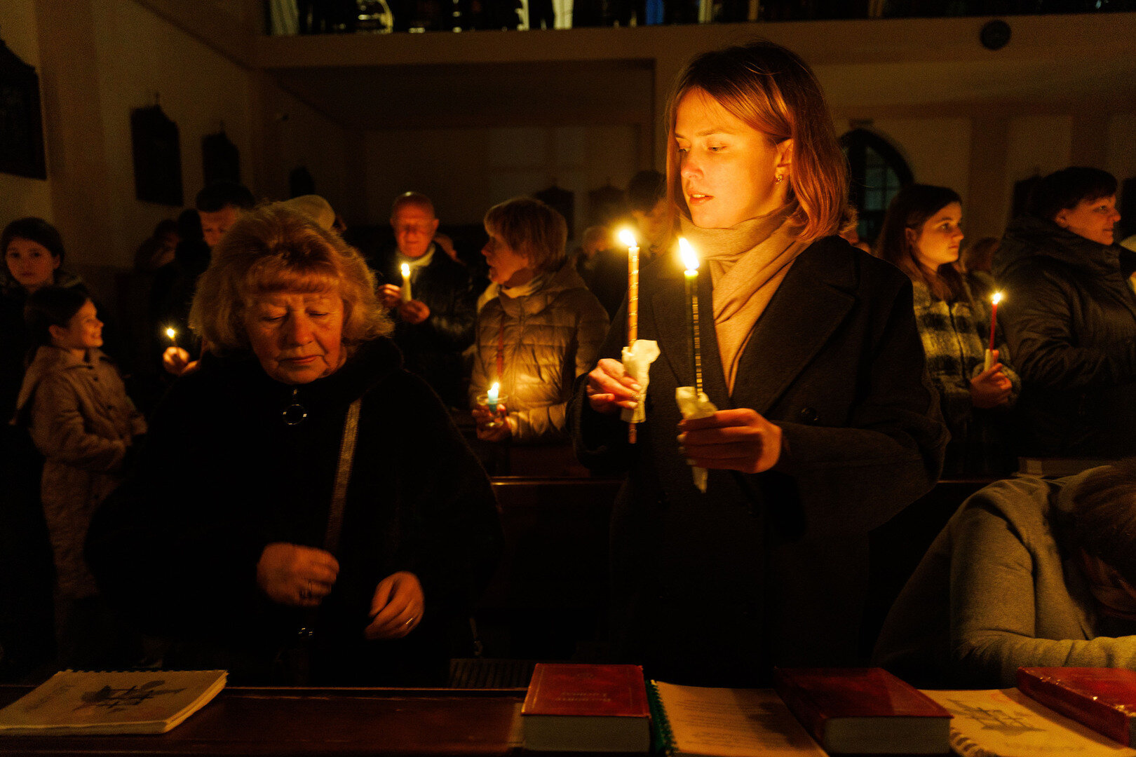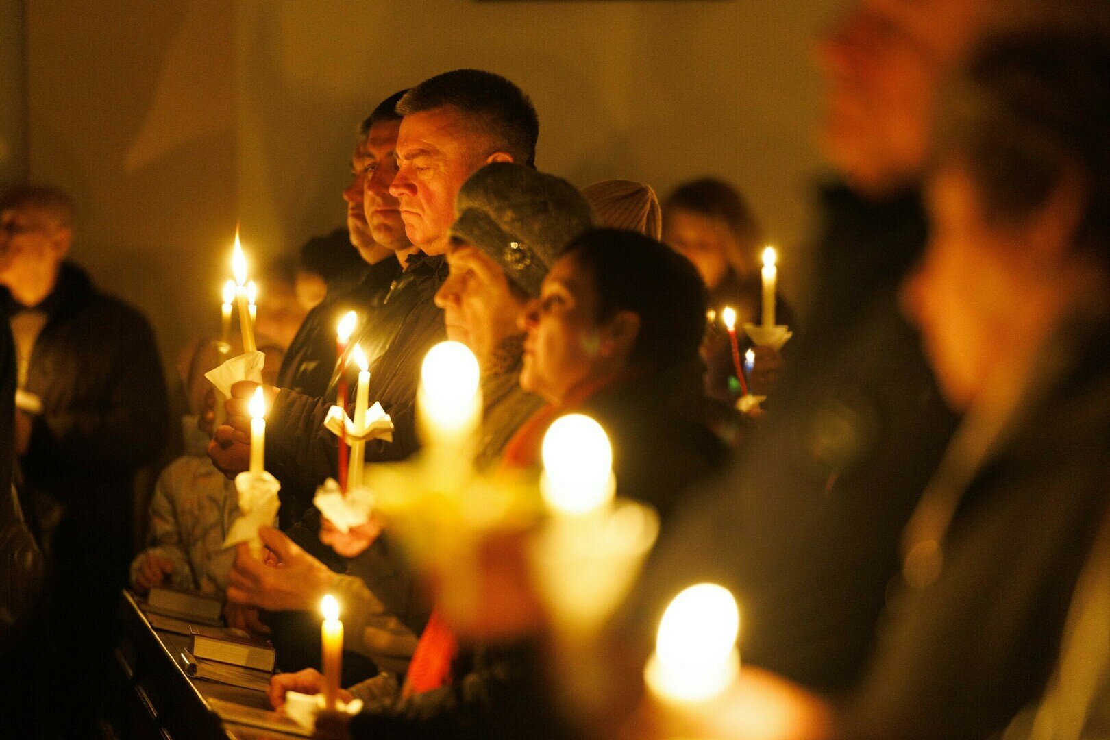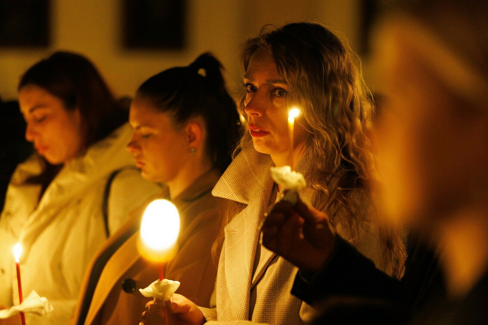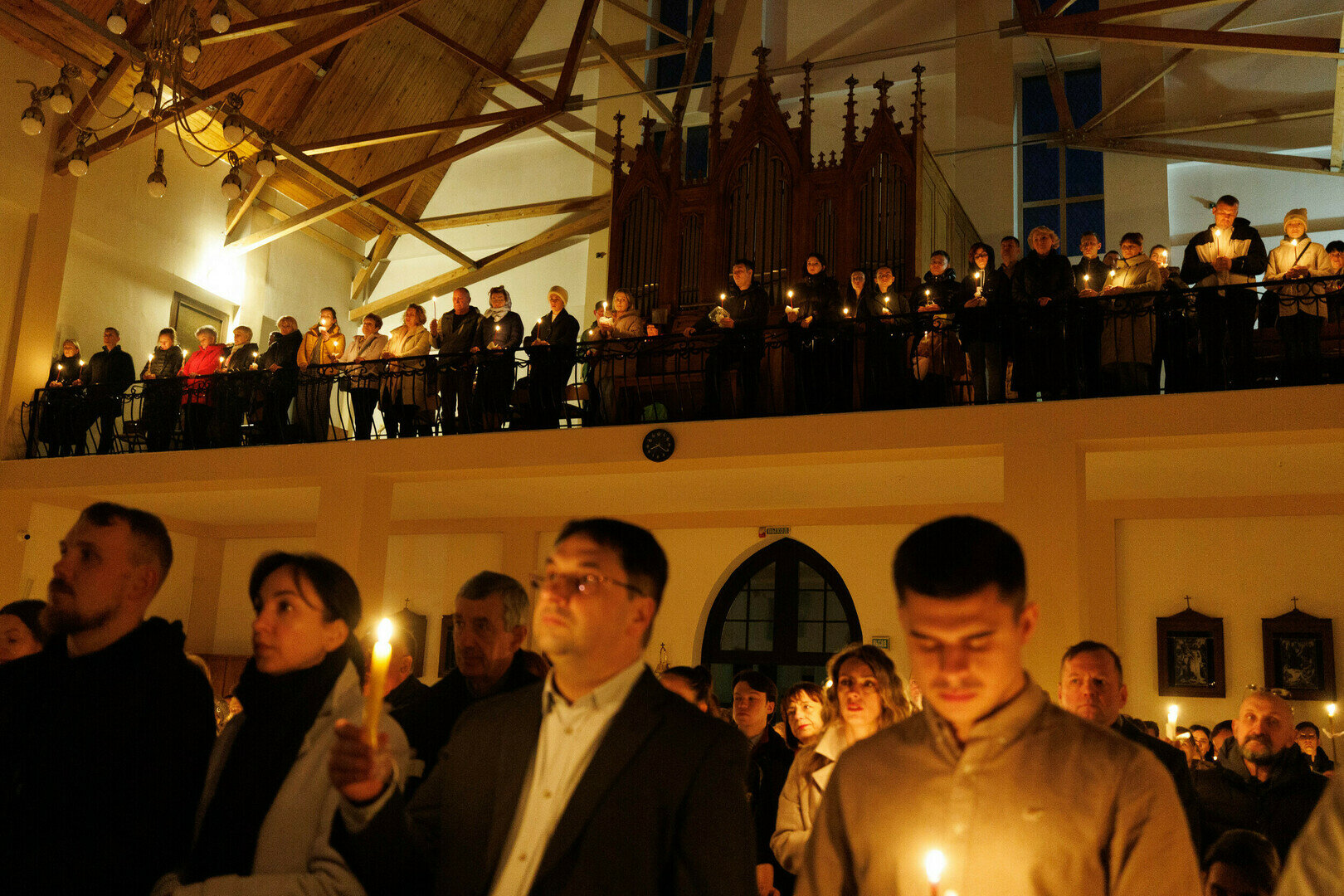 В храме святого Адальберта (ул. Александра Невского, 78в) 4 апреля в 20:00 состоялось Навечерие Пасхи. На богослужении побывал фотокорреспондент «Страны Калининград». Навечерие Пасхи — это центральное богослужение в католической традиции, которое совершается в ночь с Великой субботы на Пасхальное воскресенье. Оно символизирует переход от смерти к жизни, от тьмы к свету и считается вершиной всего литургического года. Во дворе храма разжигается костёр, от которого священник зажигает большую пасхальную свечу — пасхал (символ Христа, победившего тьму). Затем священник с зажжённой свечой входит в затемнённый храм и произносит древний гимн Exsultet («Да ликуют»), возвещая о воскрешении Христа.