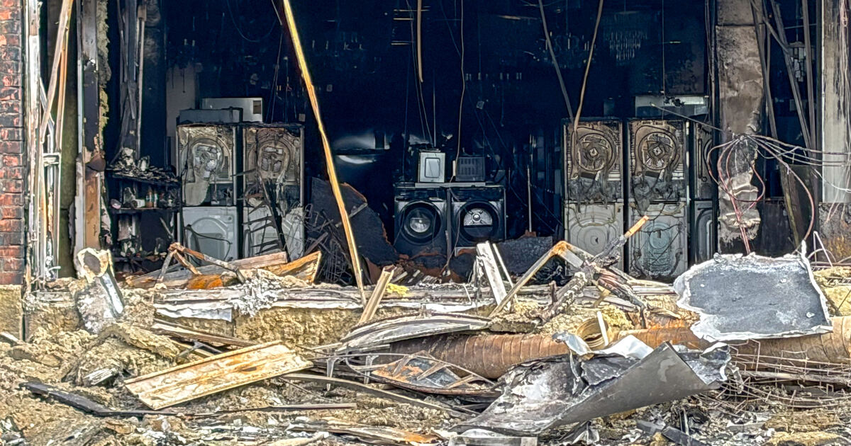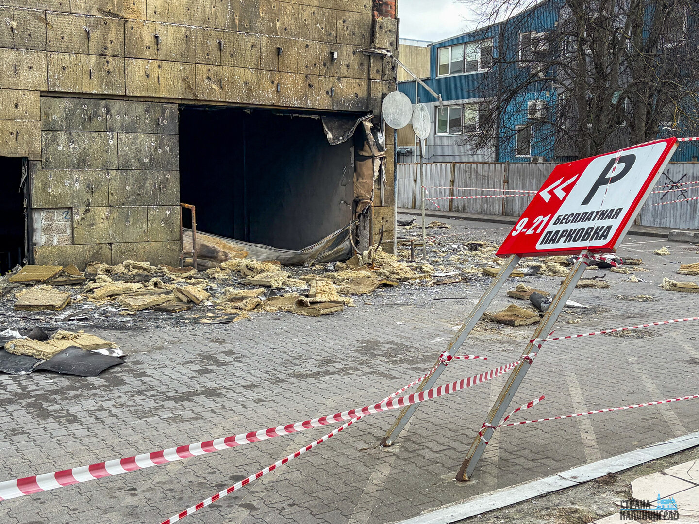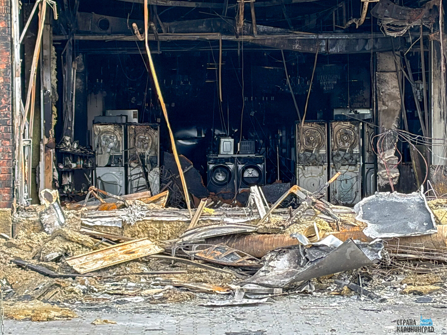 Понедельник, 6 апреля, через выбитые витрины хорошо видно, что осталось от магазинов: обгоревшие полки, расплавленные товары и следы огня. Показываем последствия воскресного крупного пожара в нашем фоторепортаже.