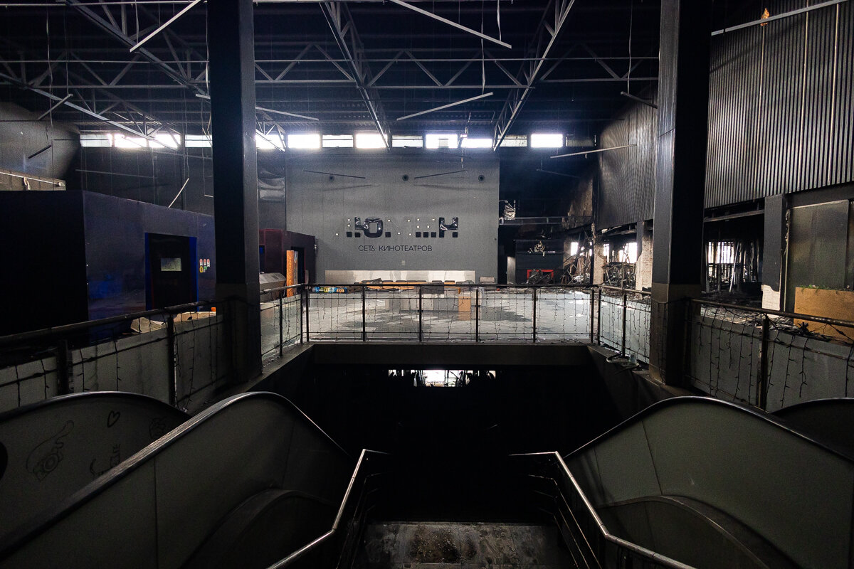 После пожара - через разбитые витрины: что видно внутри сгоревшего ТЦ.