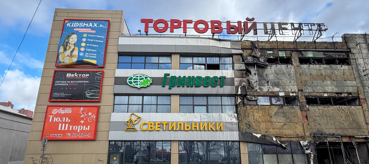 После пожара - через разбитые витрины: что видно внутри сгоревшего ТЦ.