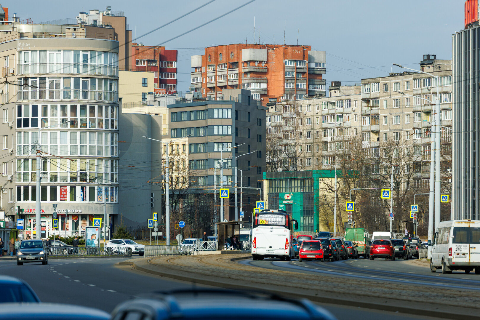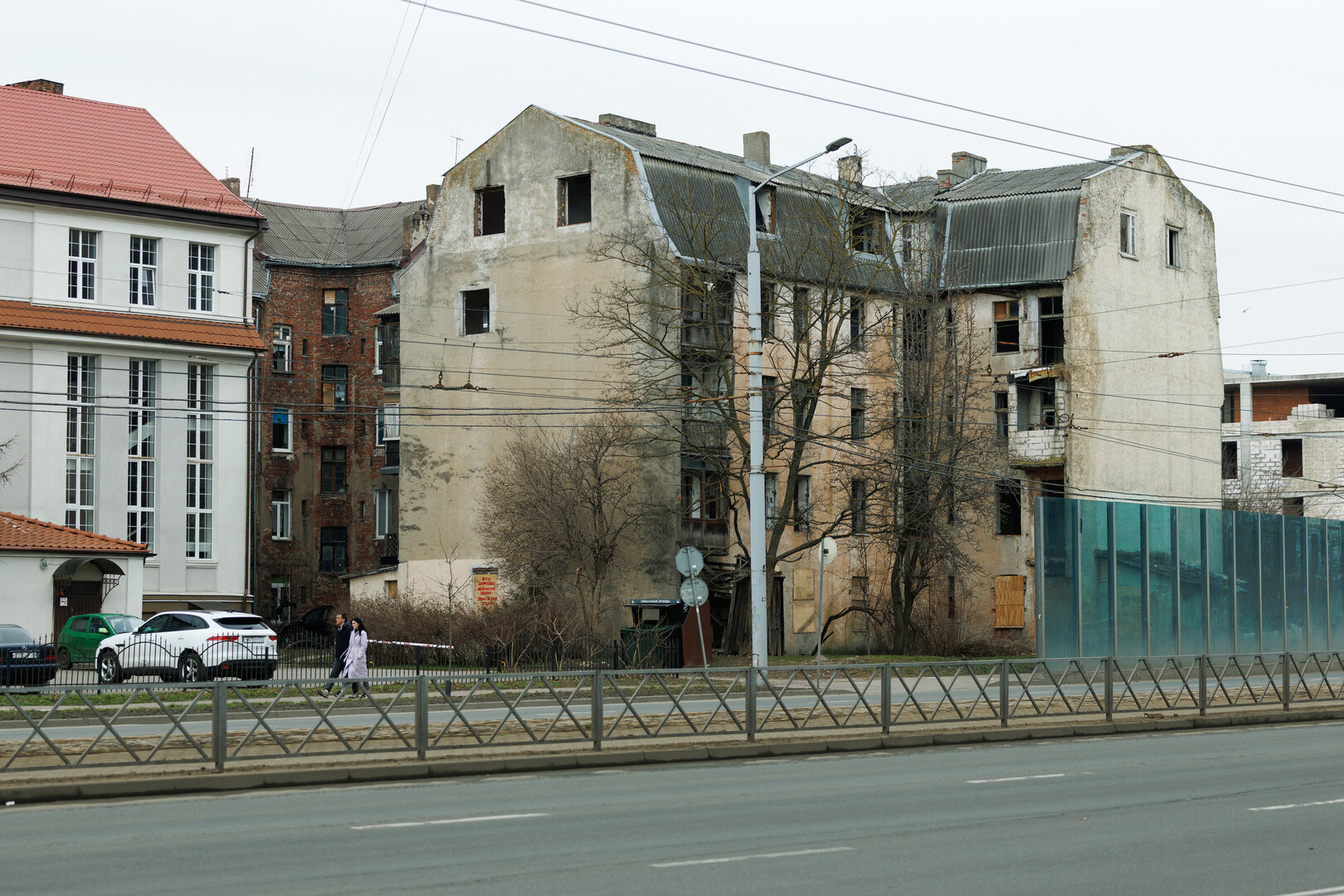 Пожалуй, ещё хуже получилось с отрезком от улицы Фрунзе до Московского проспекта (до 1974 года – ул. Московская). В 1970-х здесь тоже выросли многоэтажки (ул. 9 Апреля, 2–18). Но рядом так и остались стоять ветхие немецкие дома. А мимо них по запущенному косогору вверх-вниз скрипели трамваи, от движения которых, казалось, вот-вот сложатся полуразрушенные здания.