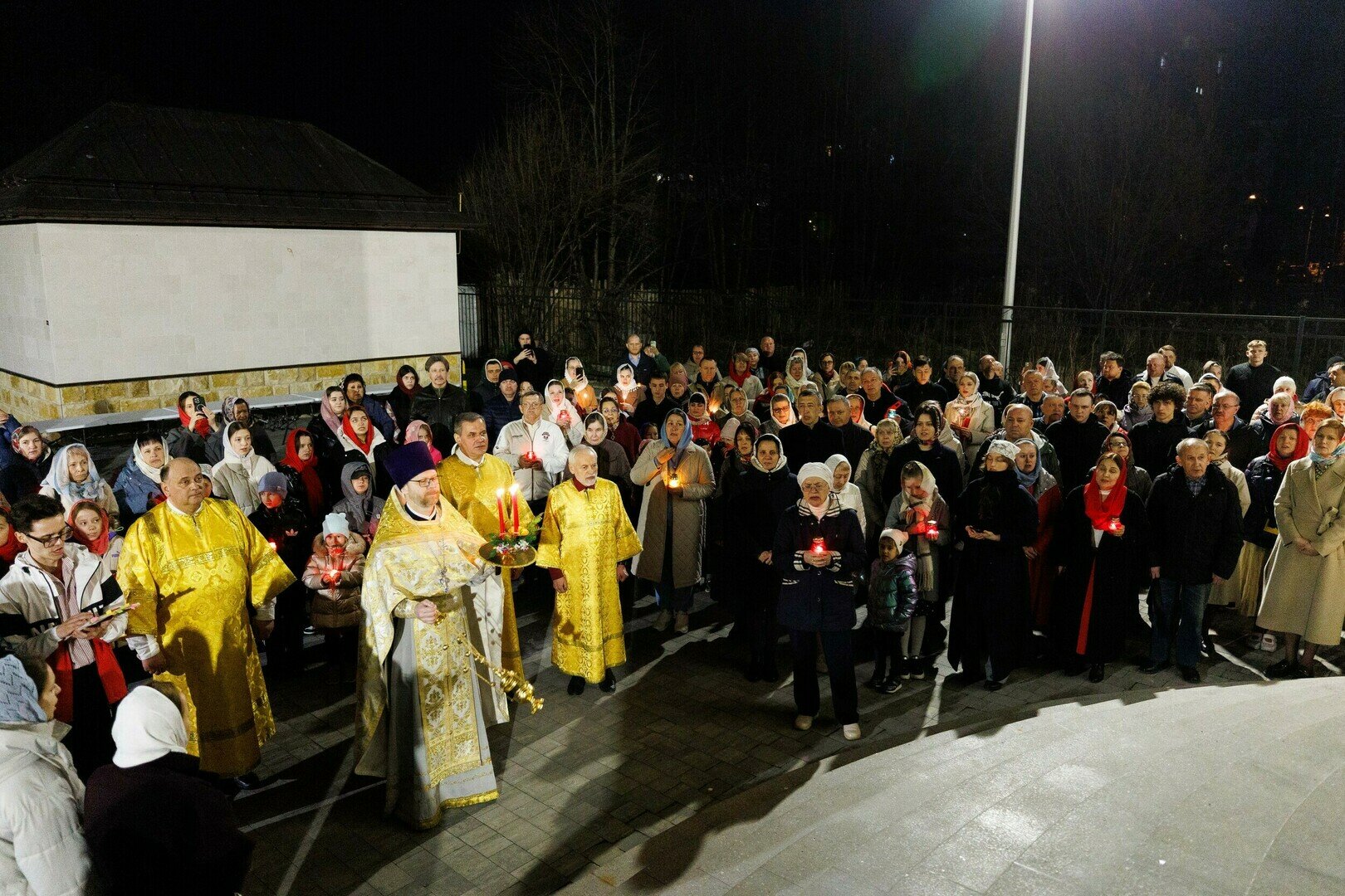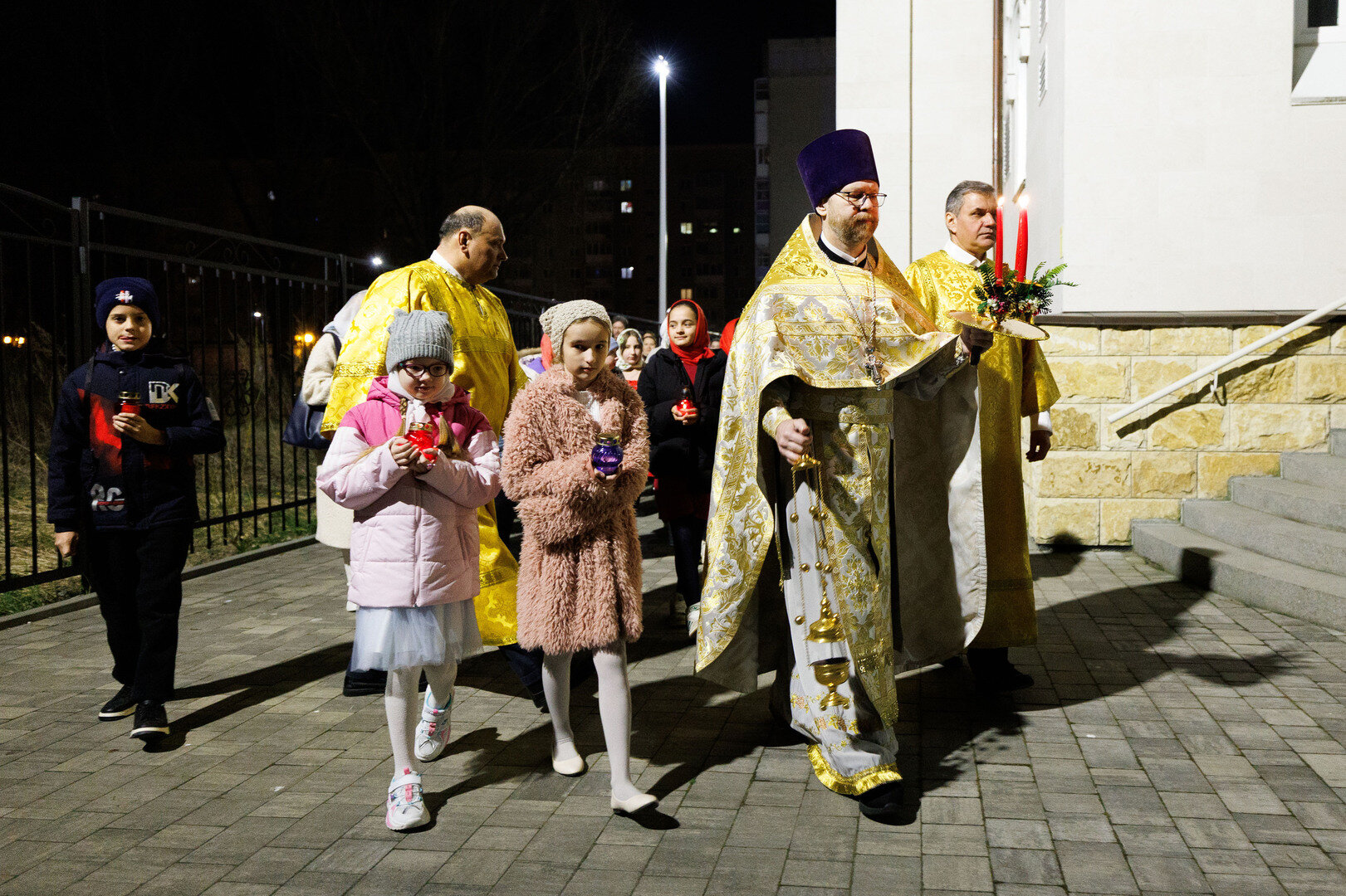 В микрорайоне Юго-Восток Калининграда в храме в честь равноапостольных Царя Константина и Царицы Елены прошла праздничная пасхальная служба. Верующие встретили Воскресение Христово за богослужением с крестным ходом, молитвами и освящением, наполнив храм светом свечей и атмосферой торжества. Как это было, в нашем фоторепортаже.