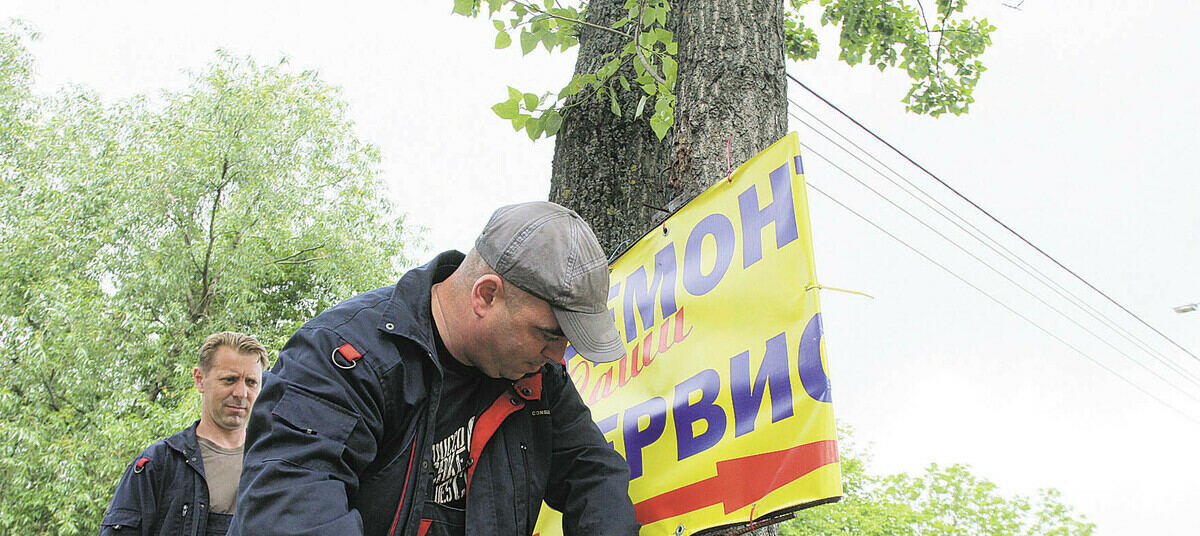 Поэтому, видимо, пока остается один метод борьбы – самим срывать незаконную рекламу. И надо сказать, что в первый же день акции был собран неплохой «урожай». Всего за час работы от разного вида конструкций было освобождено более 100 деревьев. Еще полсотни рекламных объявлений сняли с опор освещения. Также в ходе акции было выявлено несколько фактов несанкционированных свалок строительного мусора.